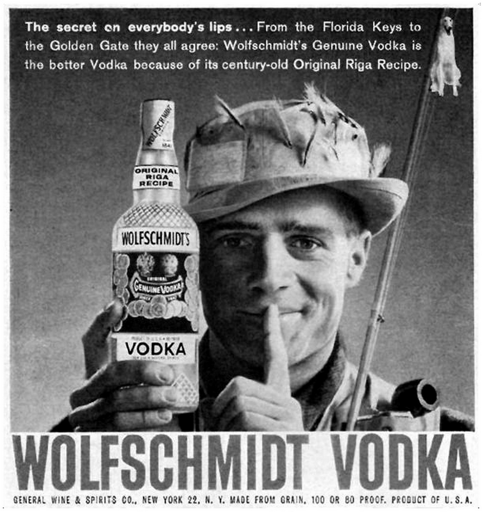 1958 The secret on everybody’s lips. From the Florida Keys to the Golden Gate they all agree Wolfschmidt’s Genuine Vodka