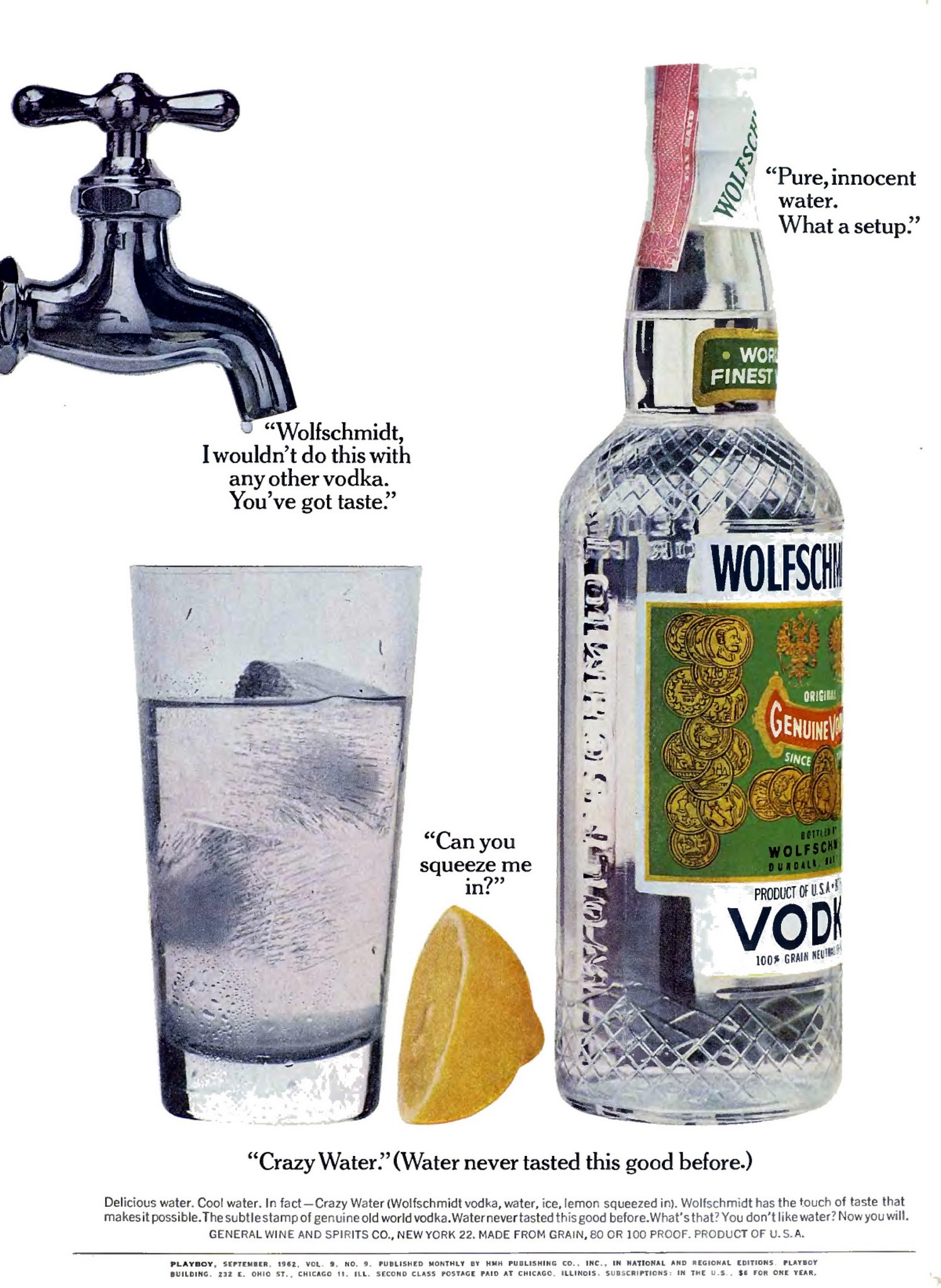 1962 Wolfschmidt Vodka. Pure, innocent water. What a setup