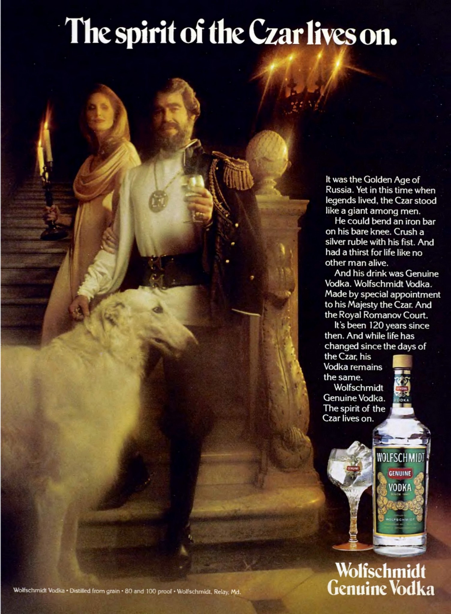1978 The spirit of the Czar lives on. Wolfschmidt Genuine Vodka