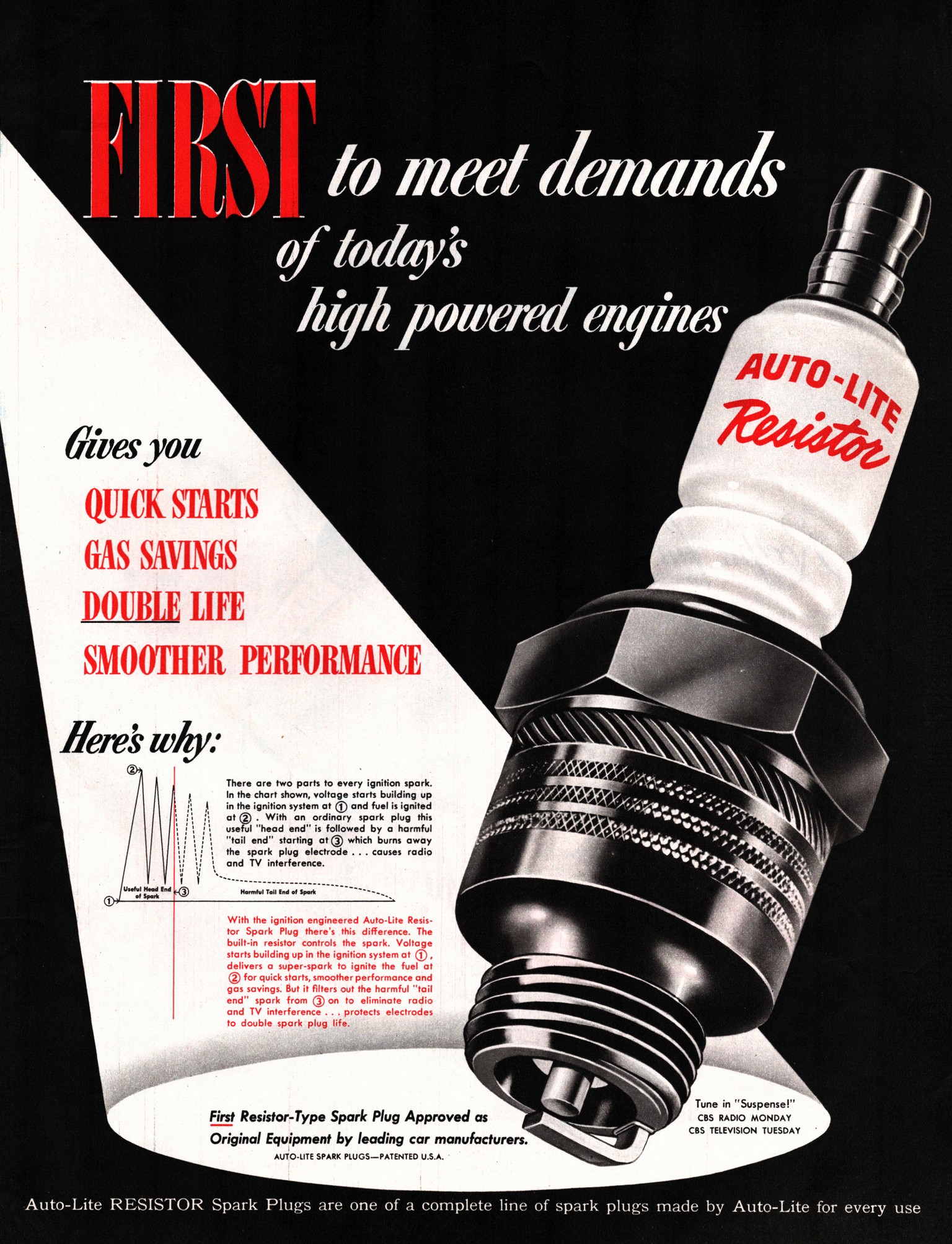 1952 First to meet demands of today's high powered engines. Auto-Lite Resistor