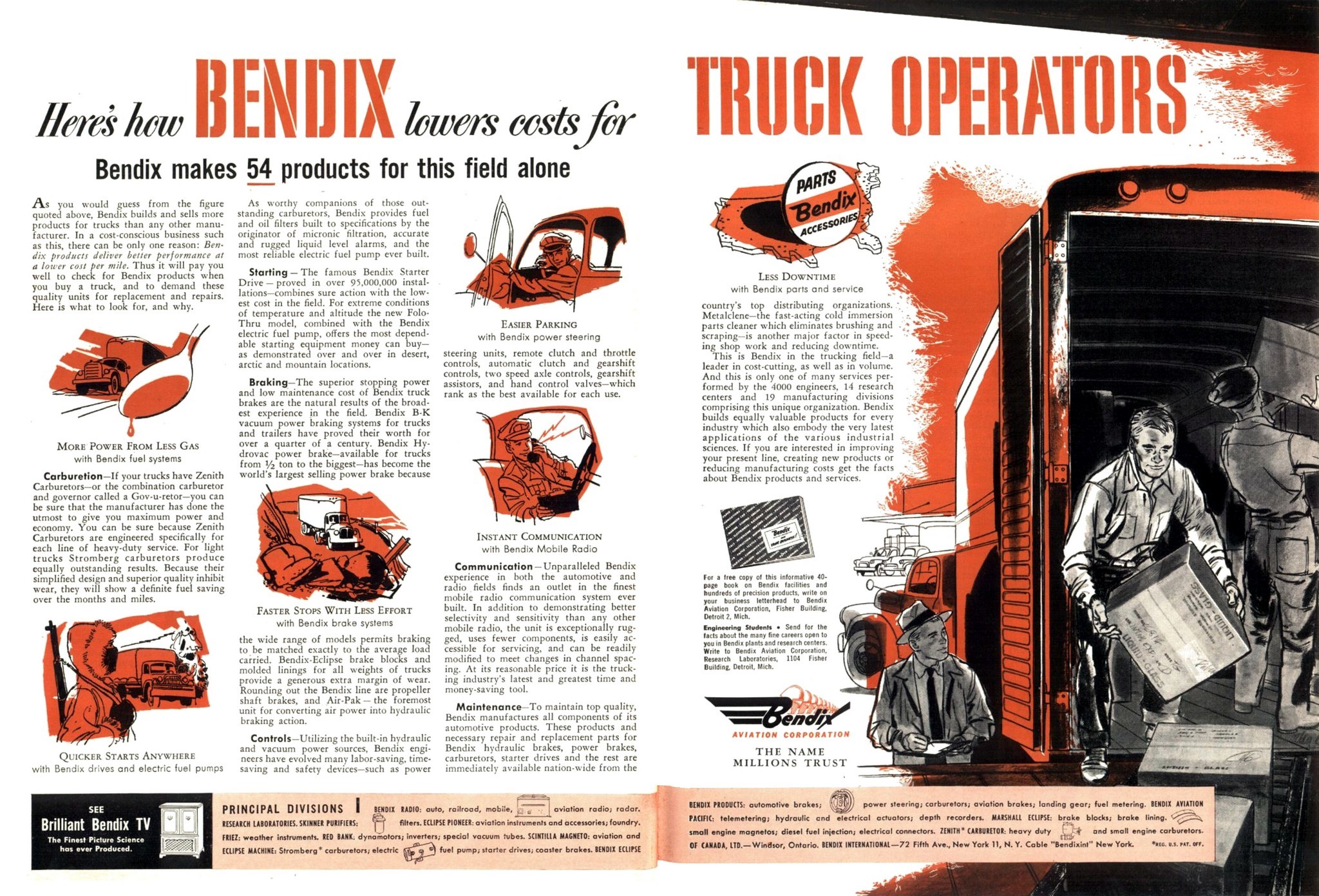 Main » Automotive » Bendix Ad and Poster Collection » 1952 Here’s how Bendix lowers costs for Truck Operators