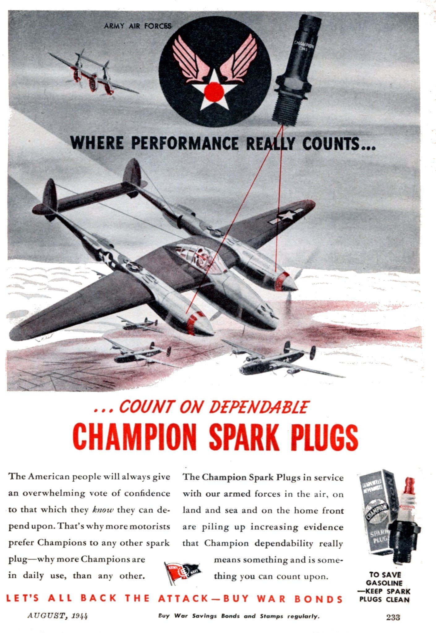 1944 Where Performance Really Counts… Count On Dependable Champion Spark Plugs