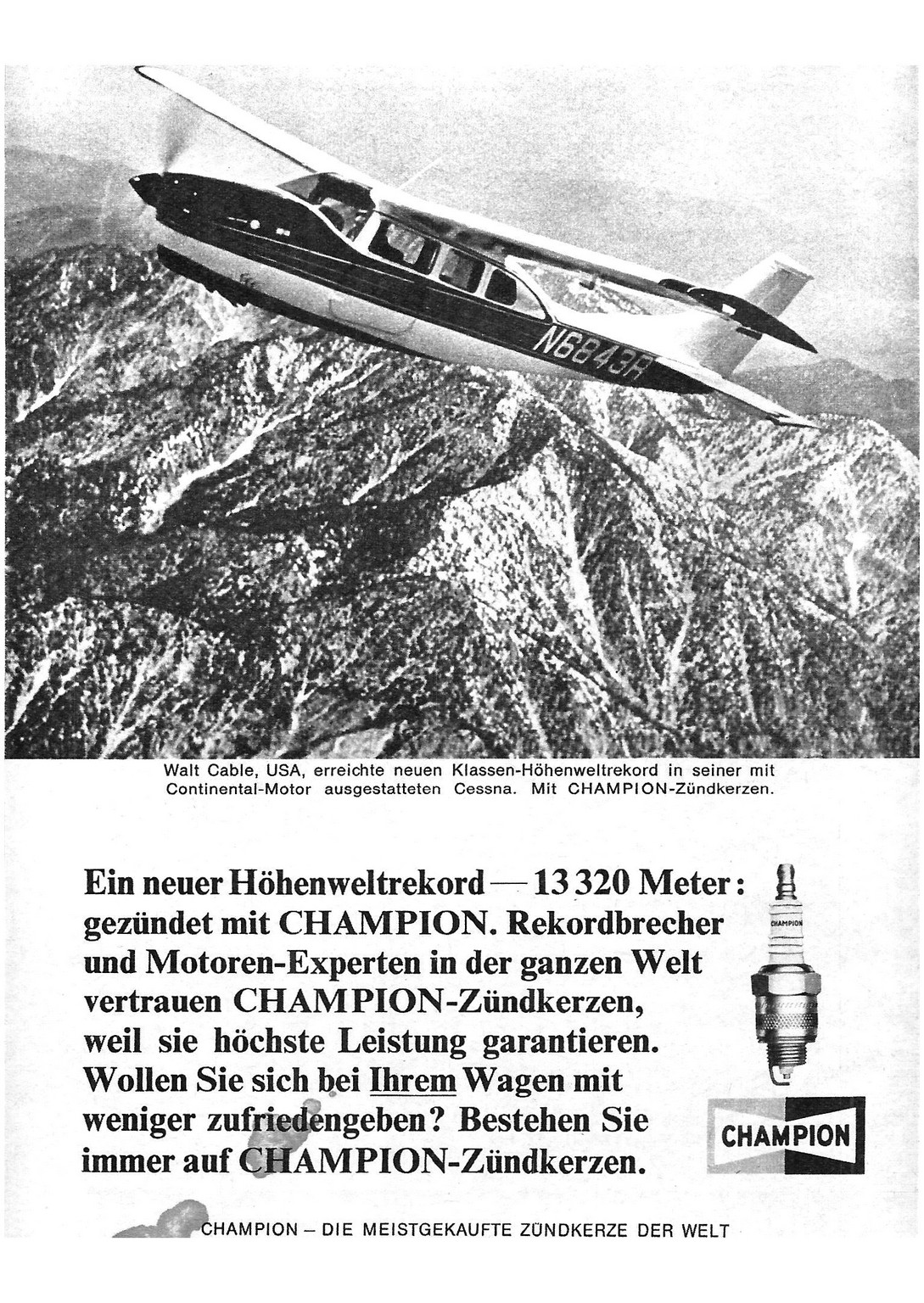 1967 Ein neuer Höhenweltrekord – 13 320 Meter. gezündet mit Champion