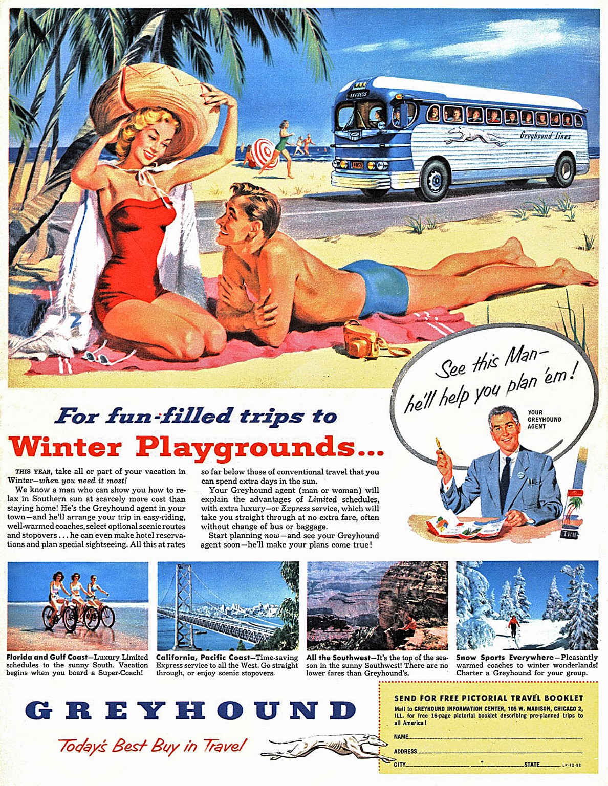 1952 For fun-filled trips to Winter Playgrounds… Greyhound