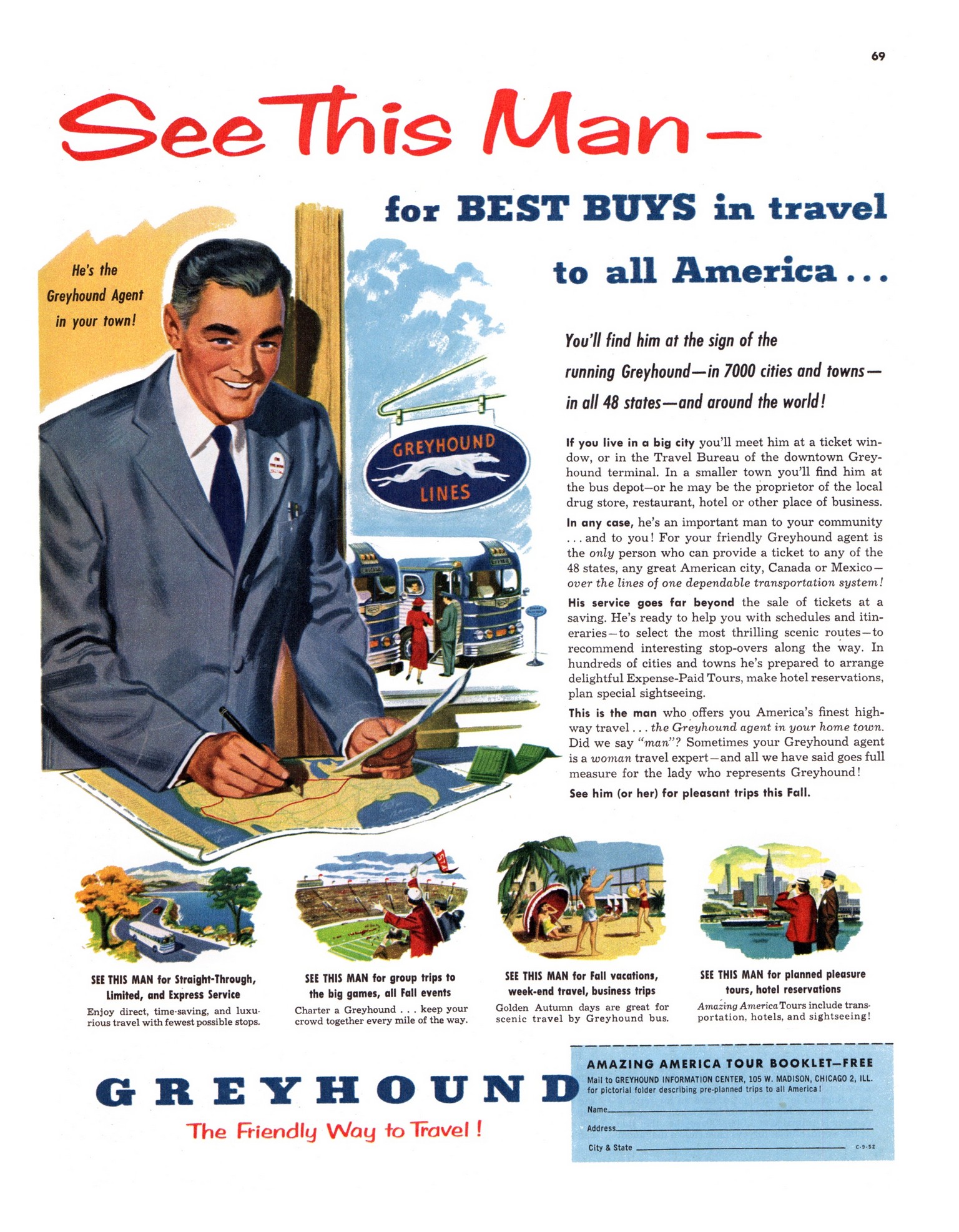 1952 See This Man – for Best Buys in travel to all America… Greyhound