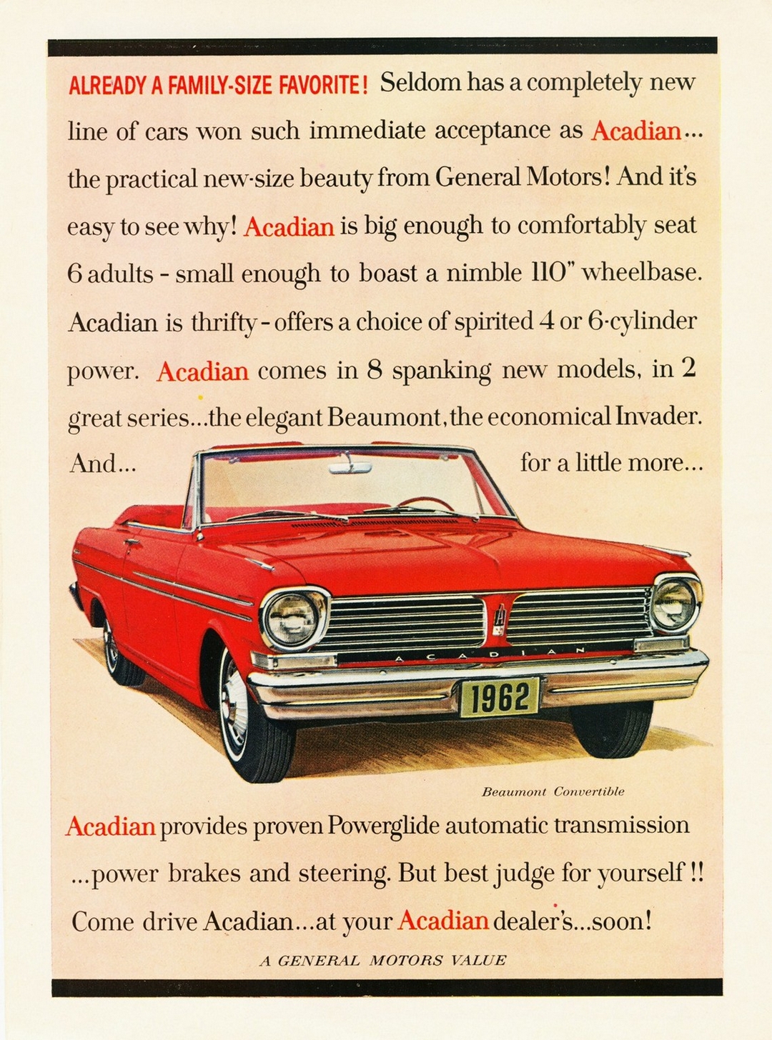 1962 Acadian Beaumont Convertible. Already A Family-Size Favorite!