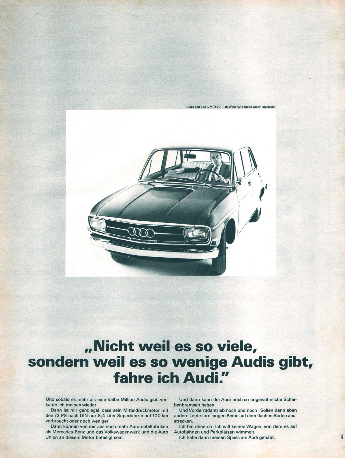 1966 Audi. 'Nich weil es so viele, sondern weil es so wenige Audis gibt, fahre ich Audi'