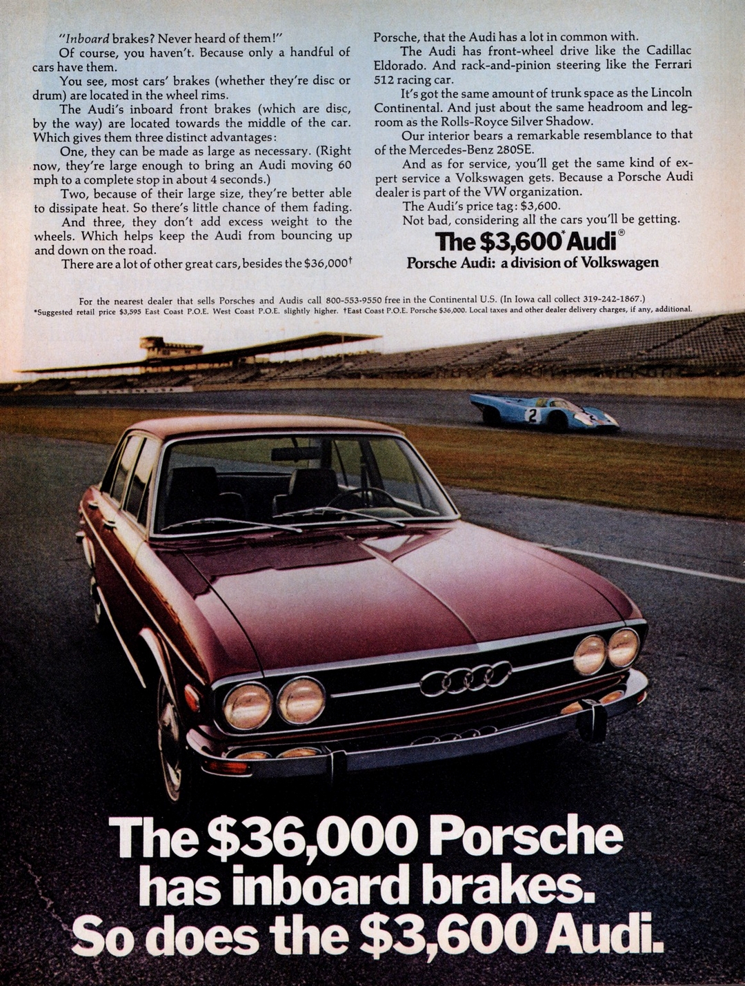 1971 Audi 100LS. The $36,000 Porsche has inboard brakes. So does the $3,600 Audi