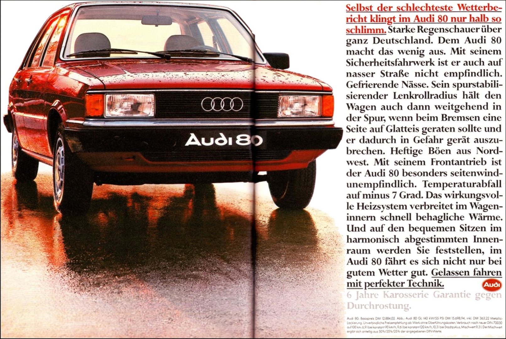 1979 Audi 80. Selbts der schlechteste Wetterbericht klingt im Audi 80 hur halb so schlimm