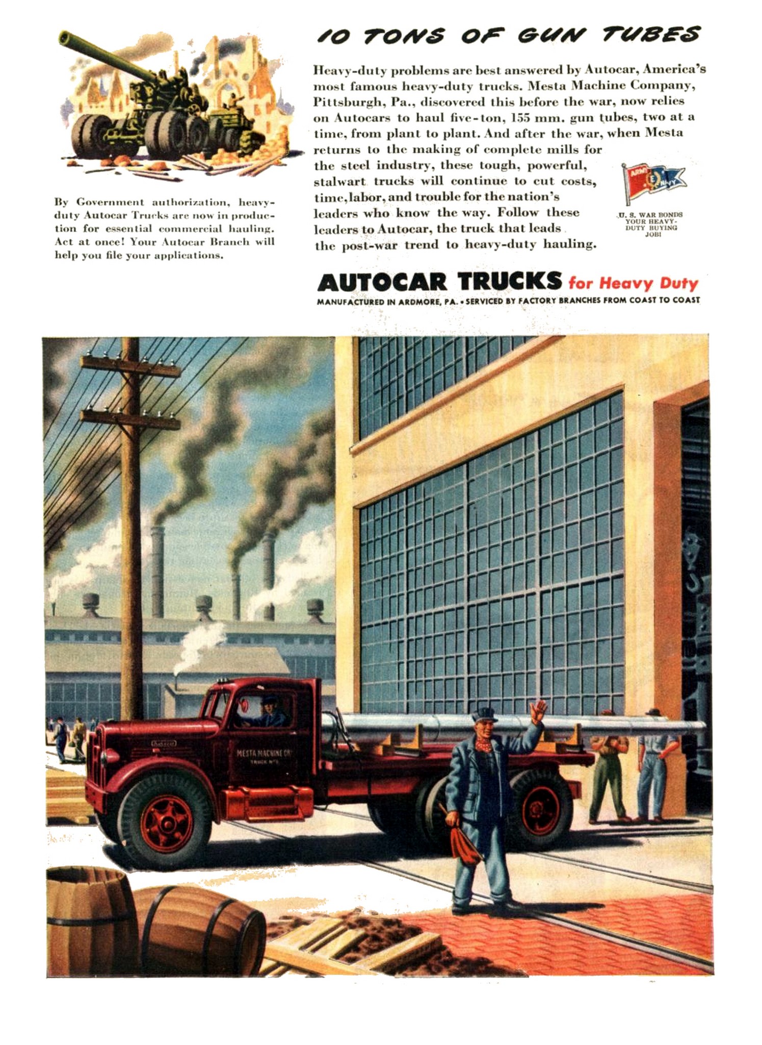 1944 Autocar Trucks. 10 Tons Of Gun Tubes