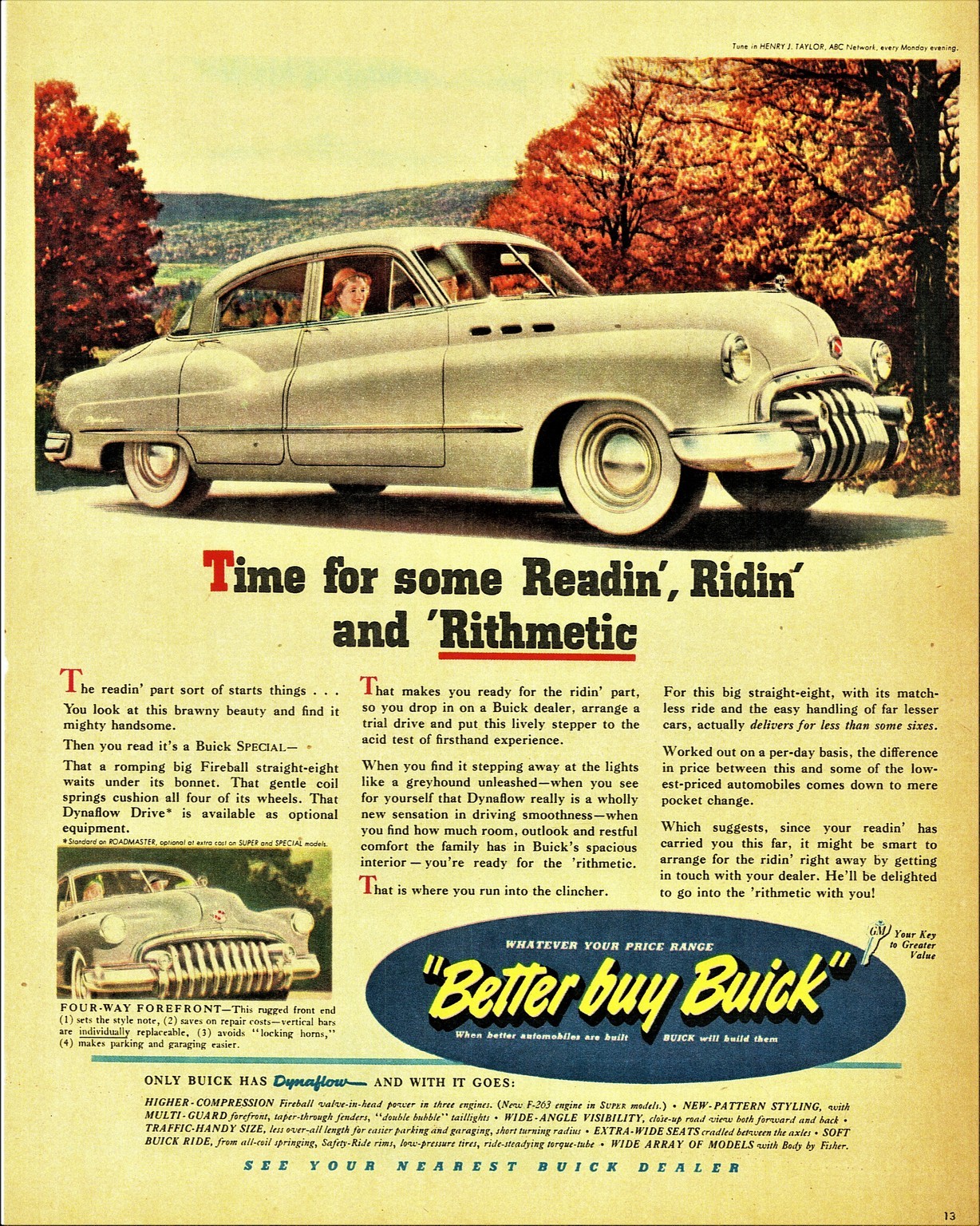 1950 Buick Special Tourback Sedan. Time for some Readin’, Ridin’ and ‘Rithmetic