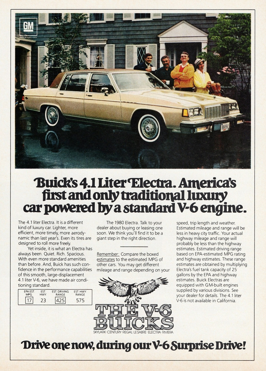 1980 Buick Electra Park Avenue Sedan. America’s first and only traditional luxury car powered by a standard V-6 engine