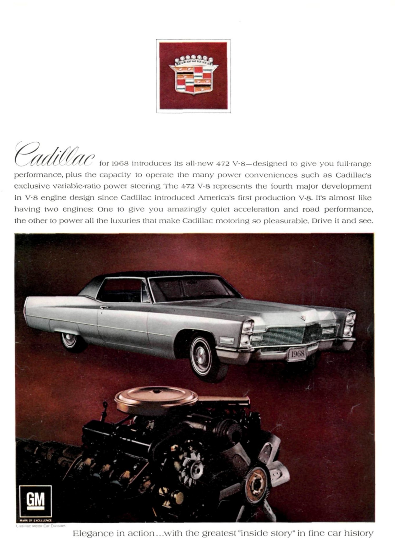 1968 Cadillac. Elegance in action… with the greatest ‘inside story’ in fine car history