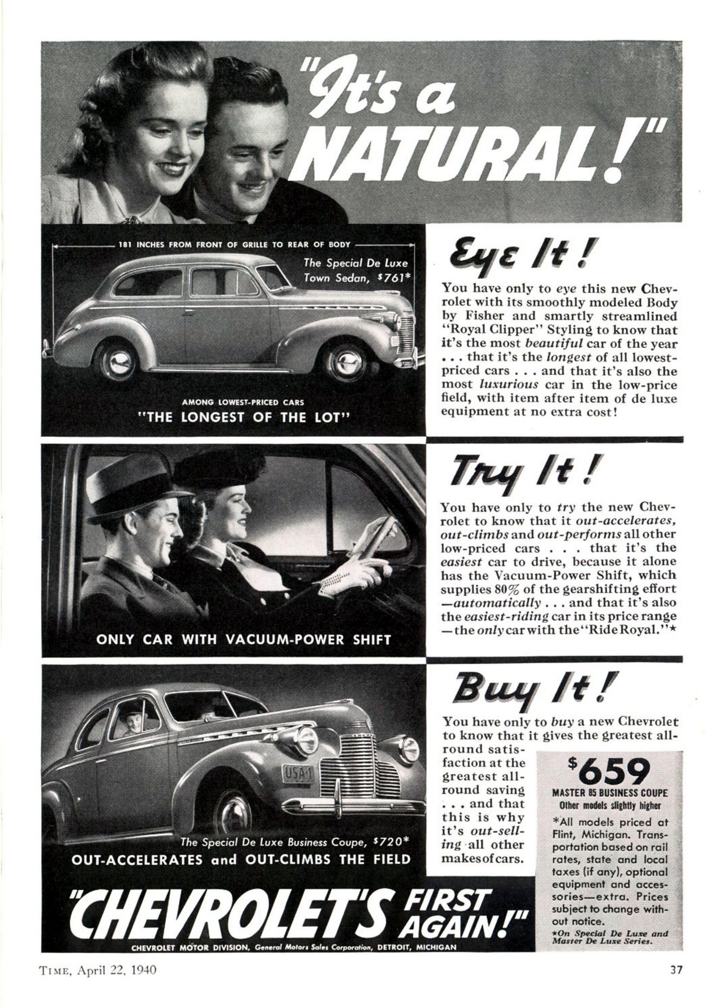 1940 Chevrolet. ‘It’s a Natural!’ Eye It! Try It! Buy It!