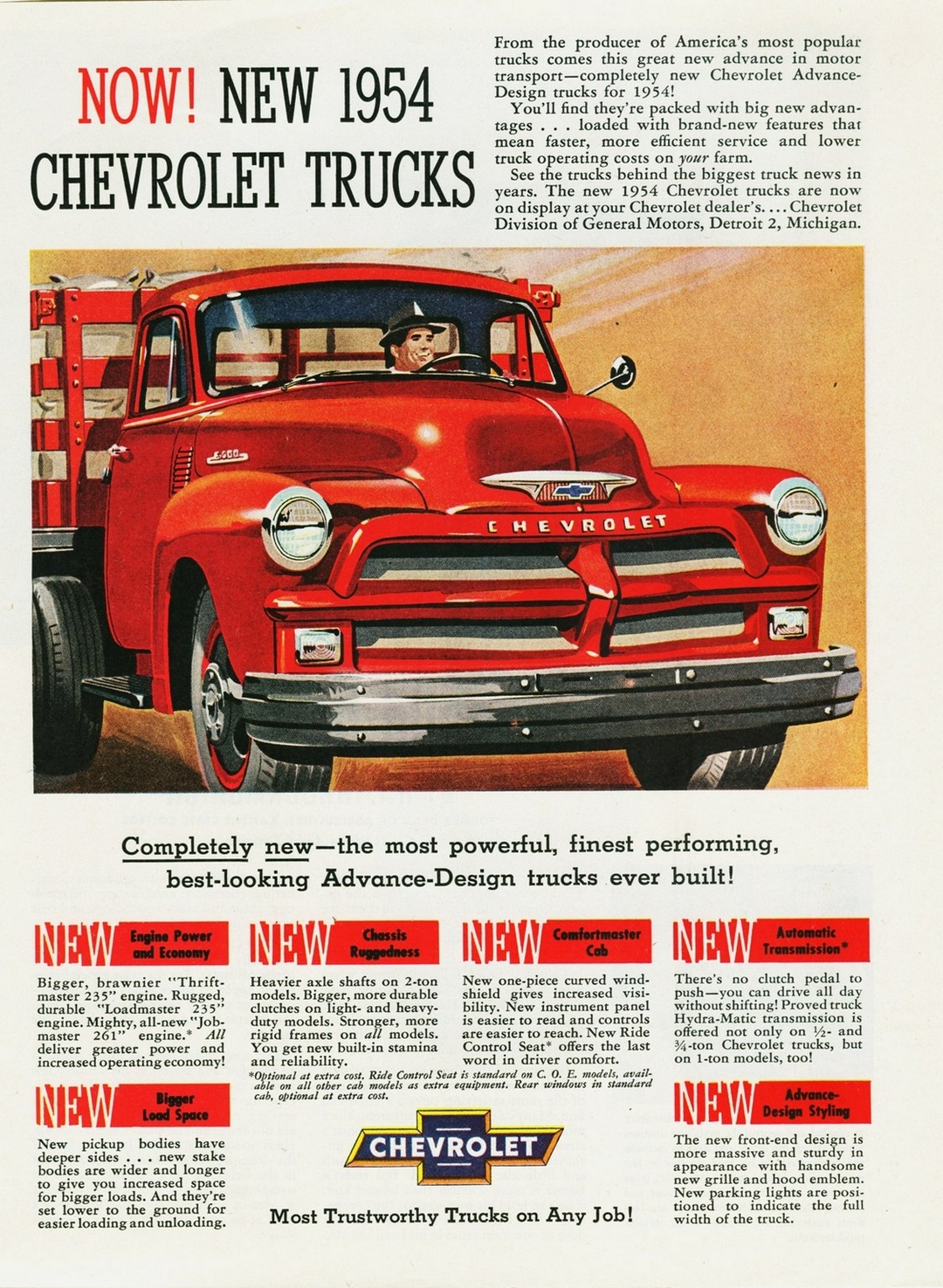 1954 Chevrolet Truck. Completely new - the most powerful, finest performing, best-looking Advance-Design trucks ever built!