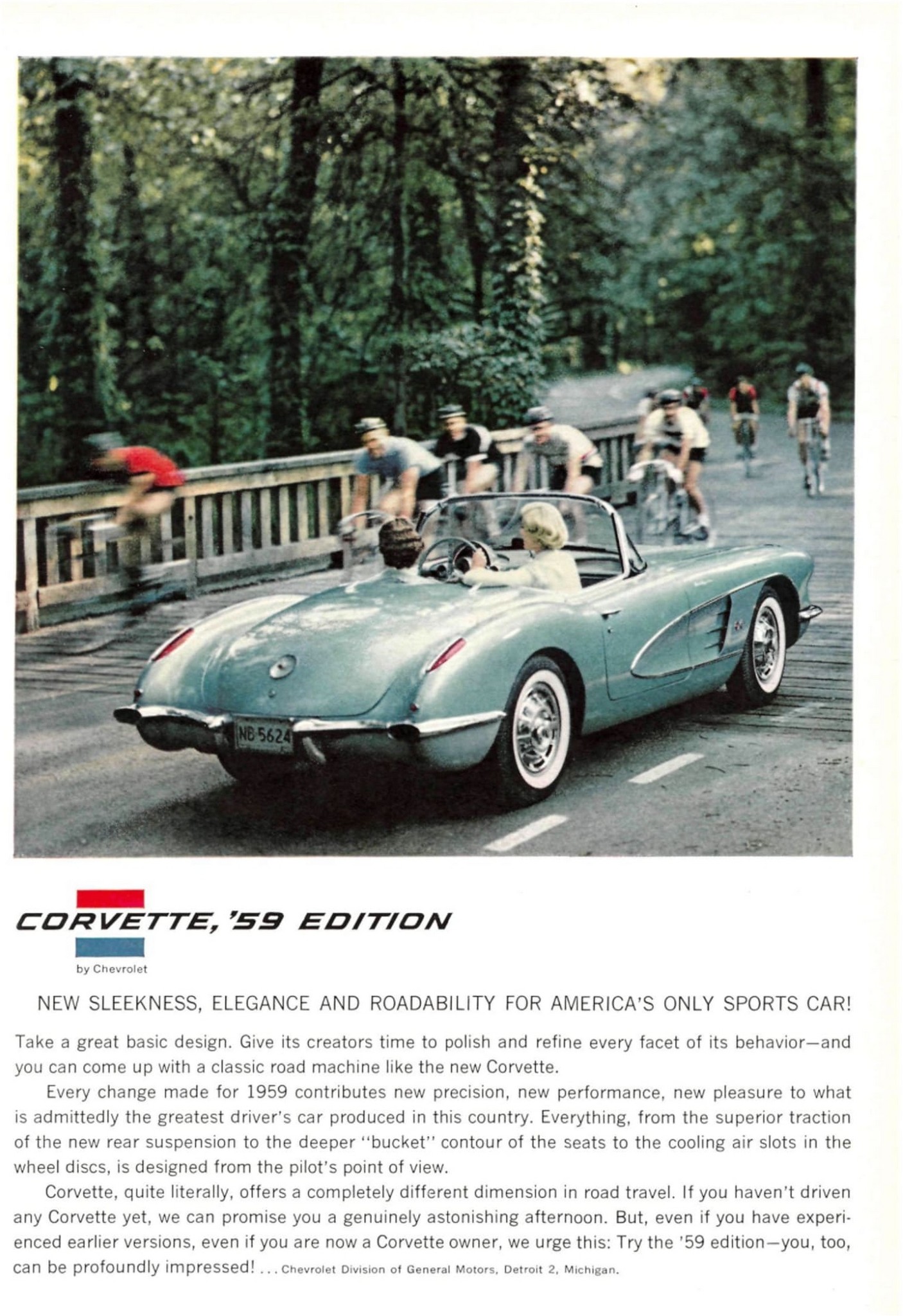 1959 Chevrolet Corvette, '59 Edition. New Sleekness, Elegance And Roadability For America's Only Sports Car!