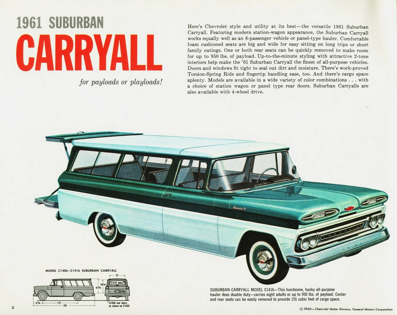 1961 Chevrolet Suburban Carryall for payloads or playloads!