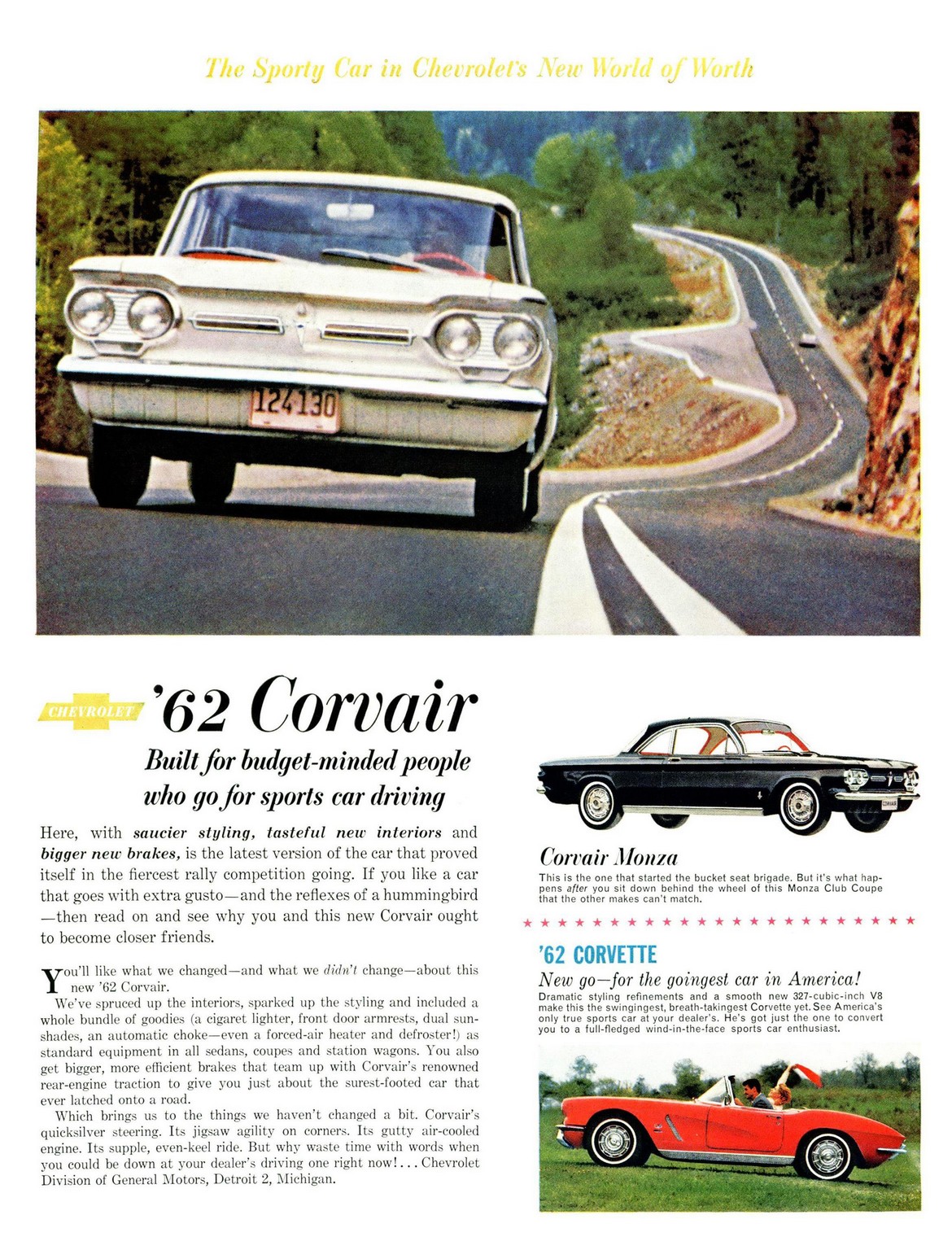 1962 Chevrolet Corvair. Built for budget-minded people who go for sports car driving