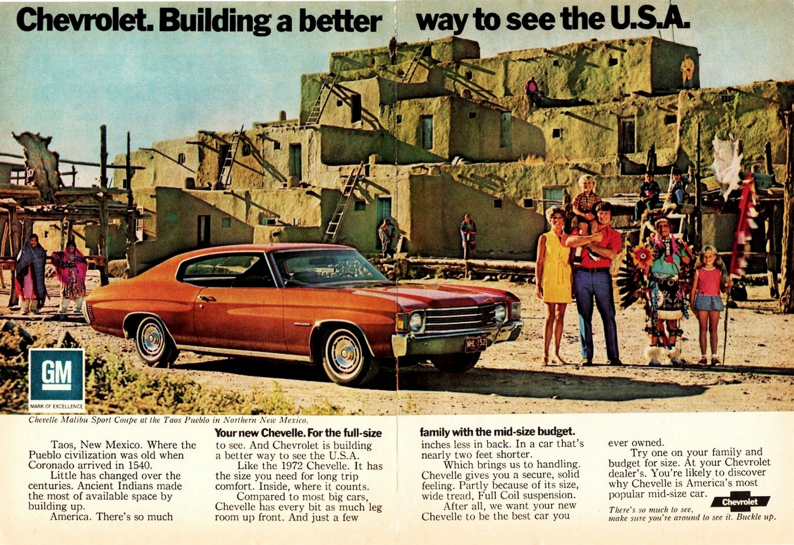1972 Chevrolet Chevelle Malibu Sport Coupe at Taos Pueblo. Building a better way to see the U.S.A.