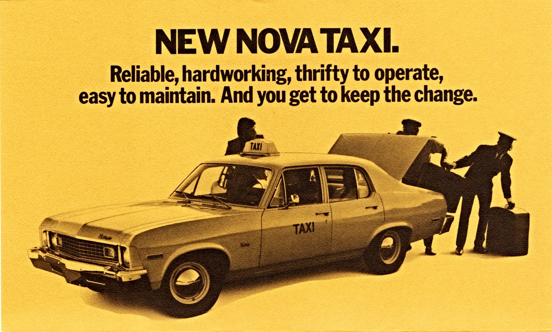 1973 Chevrolet Nova Taxi. Reliable, hardworking, thrifty to operate, easy to maintain. And you get to keep the change