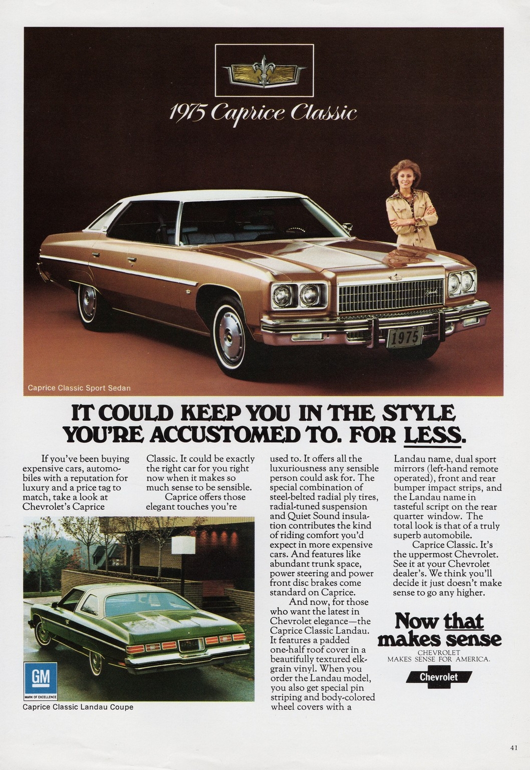 1975 Chevrolet Caprice Classic Sport Sedan & Landau Coupe. It Could Keep You In The Style You're Accustomed To. For Less