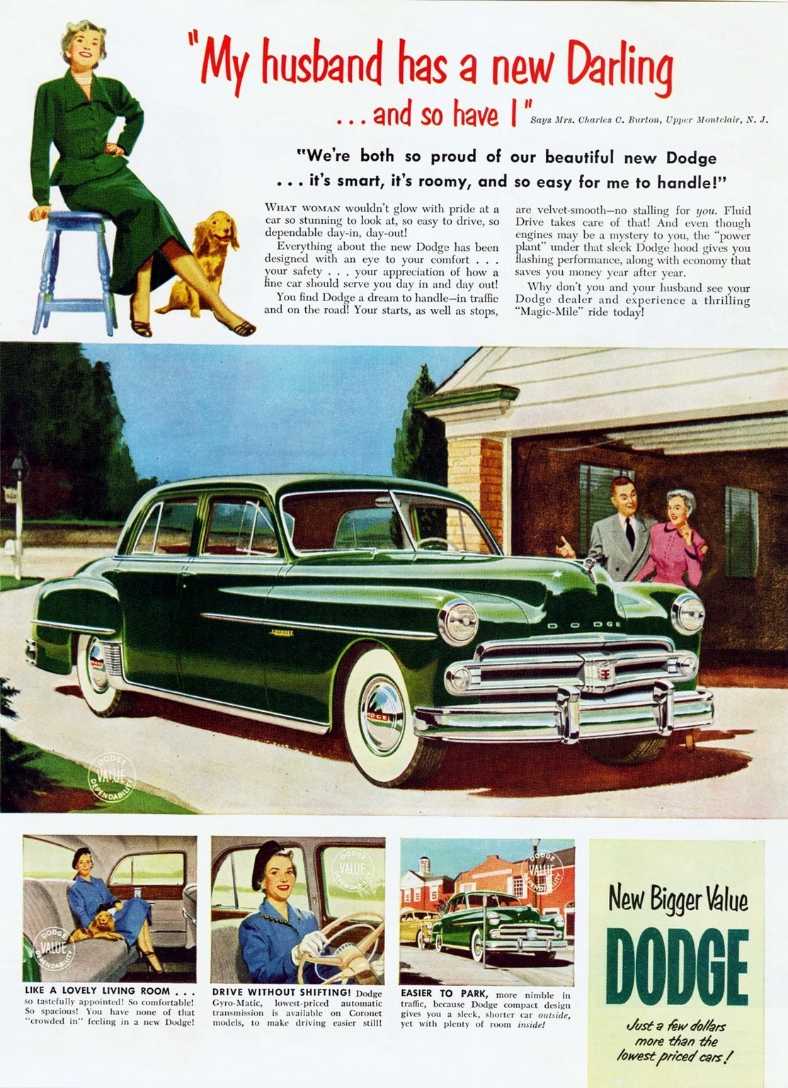1950 Dodge Coronet 4-Door Sedan. 'My husband has a new Darling ... and so have I'