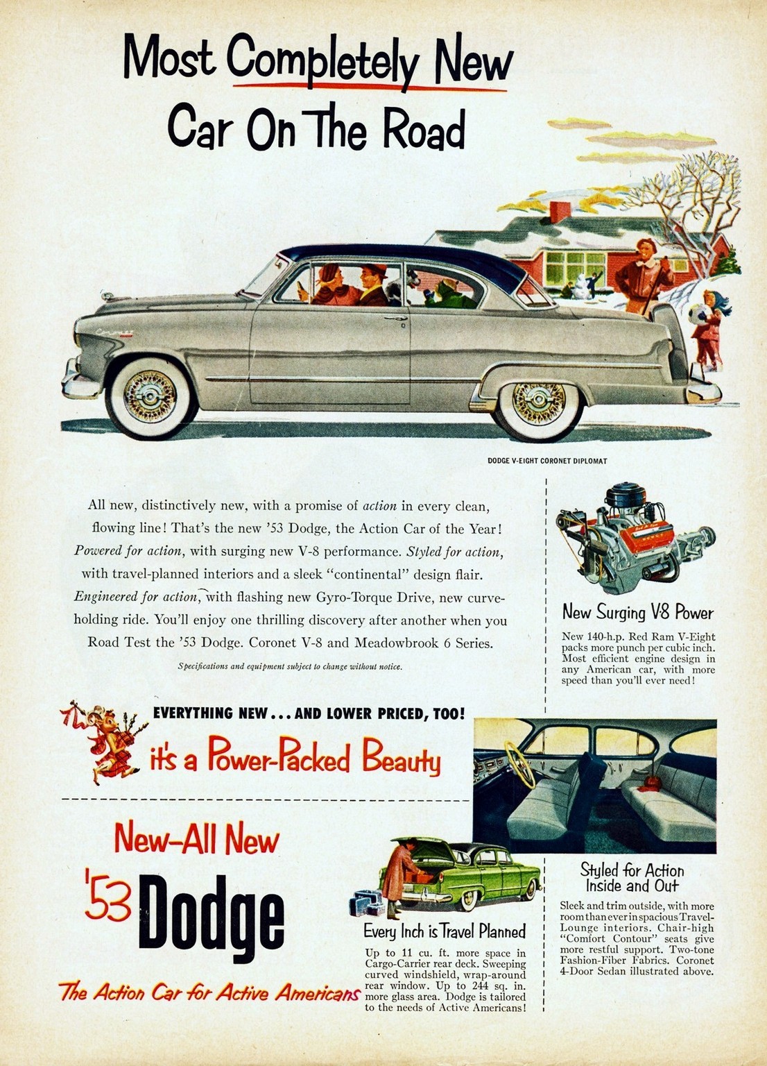 1953 Dodge Coronet V-8 Diplomat Hardtop. Most Completely New Car On The Road