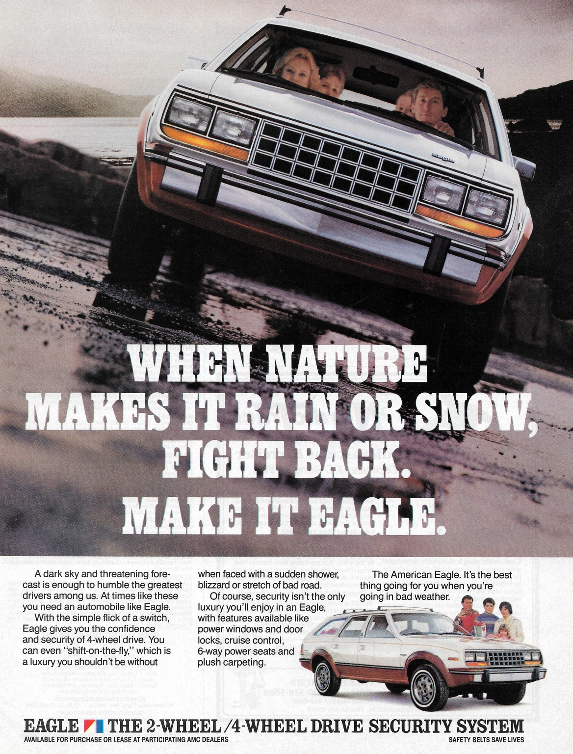 1985 AMC Eagle Station Wagon. When Nature Makes It Rain Or Snow, Fight Back. Make It Eagle