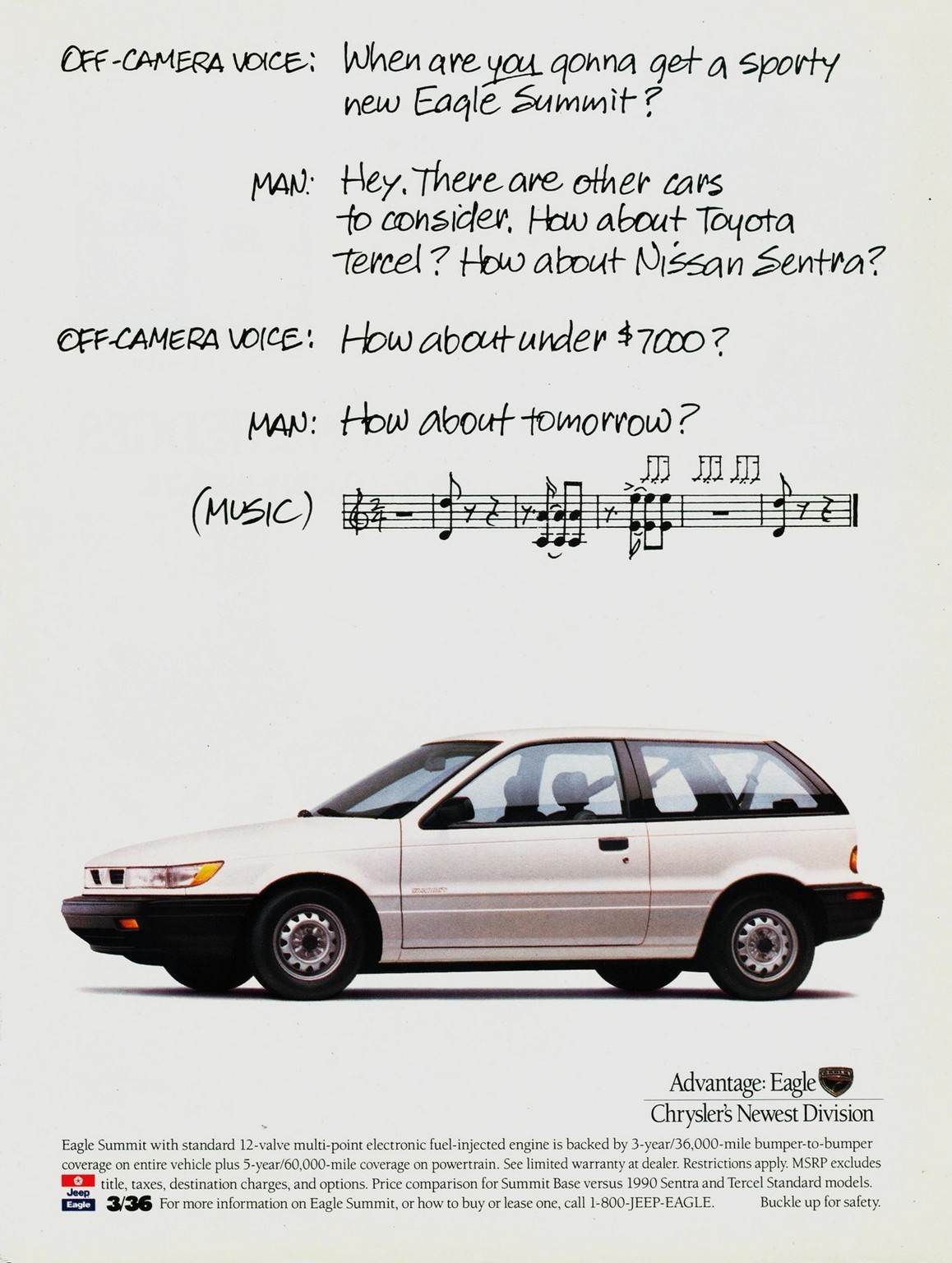 1991 Eagle Summit. Advantage. Eagle. Chrysler's Newest Division