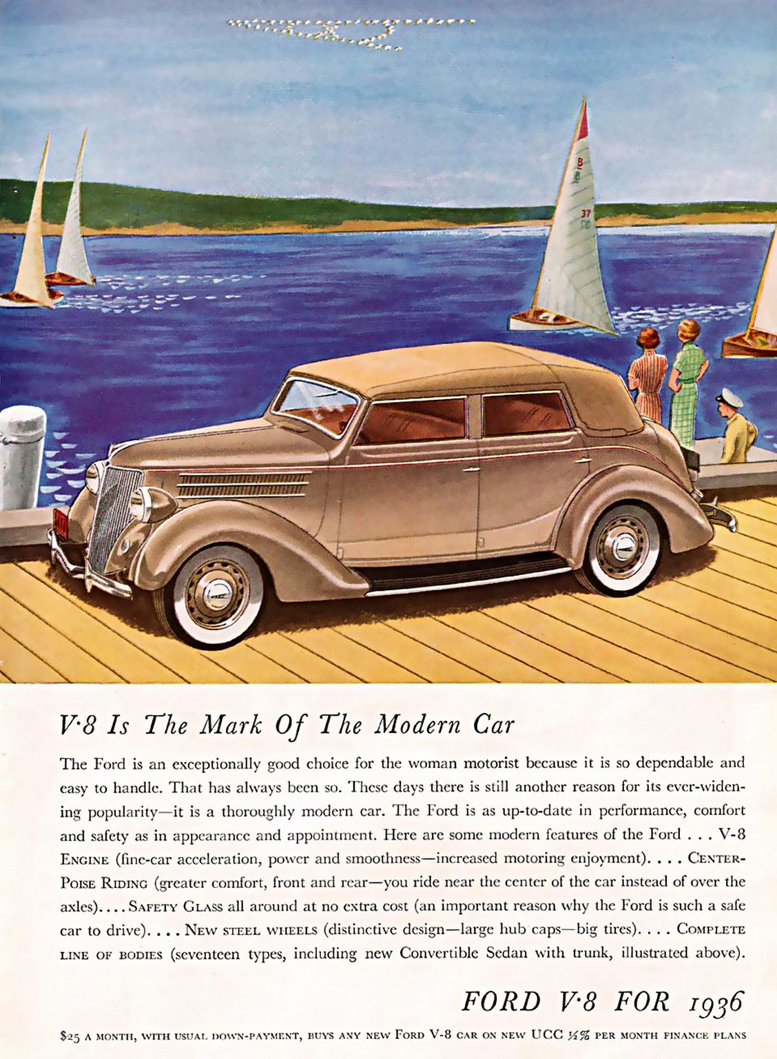 1936 Ford V-8. V-8 Is The Mark Of The Modern Car