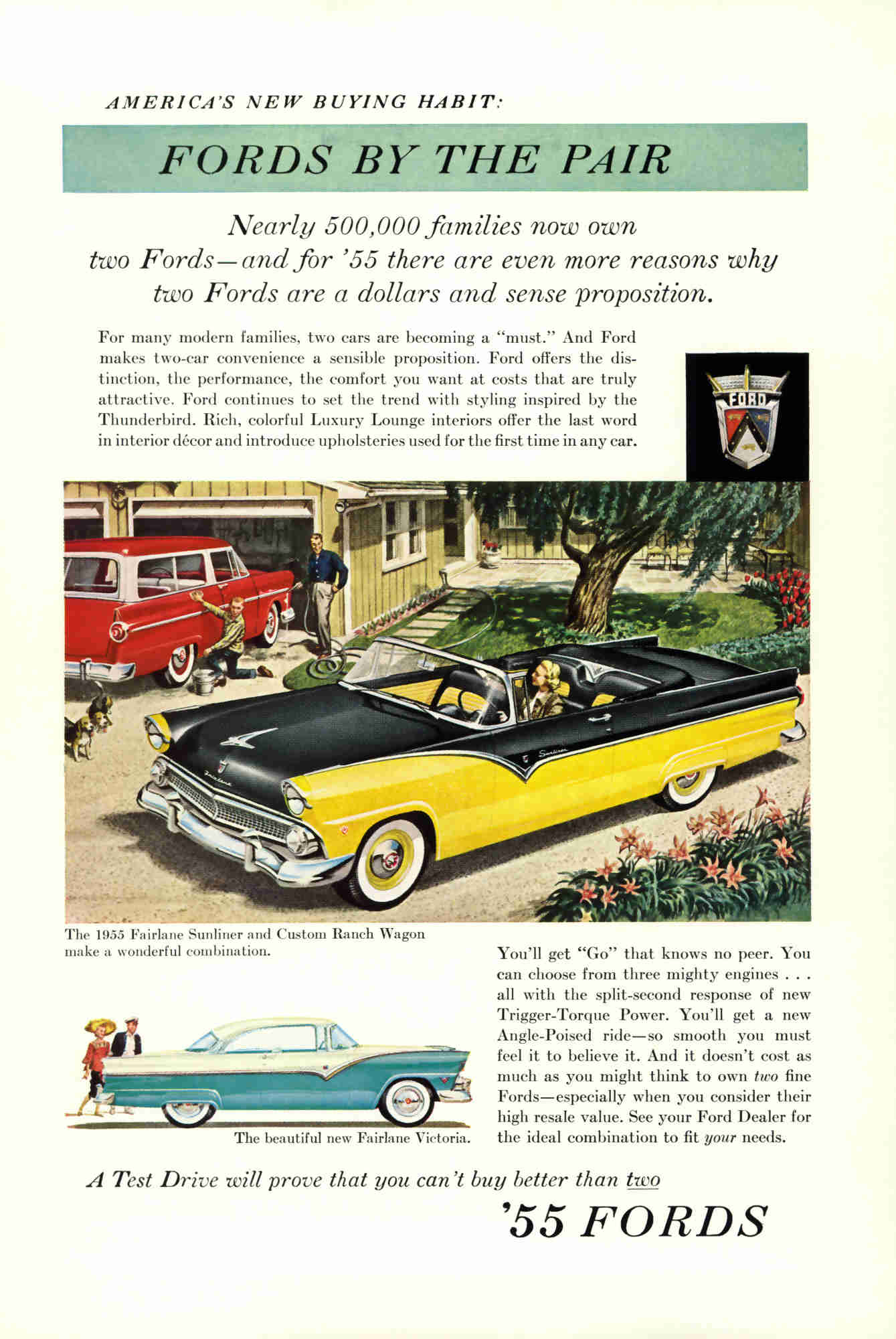 1955 Ford Fairlane Models. America's New Buying Habit. Fords By The Pair