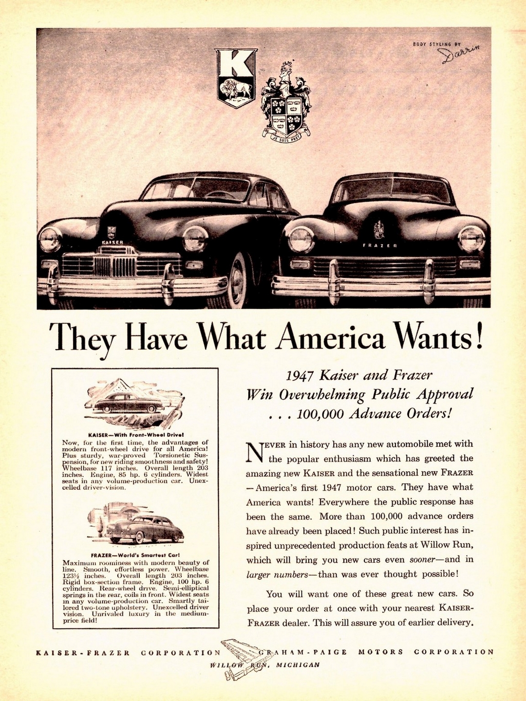 1947 Kaiser and Frazer. They Have What America Wants!