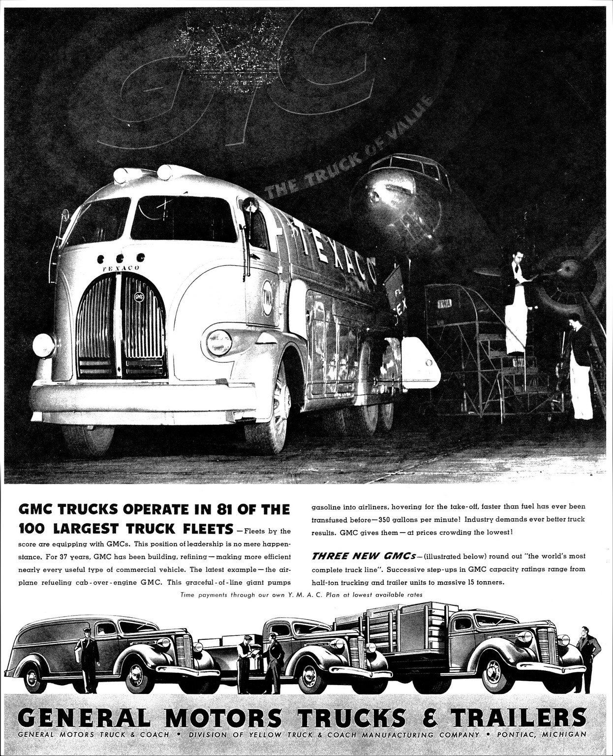 Main » Cars » GMC Ad and Poster Collection » 1938 GMC Texaco Tanker Truck. GMC Trucks Operate In 81 Of The 100 Largest Truck Fleets