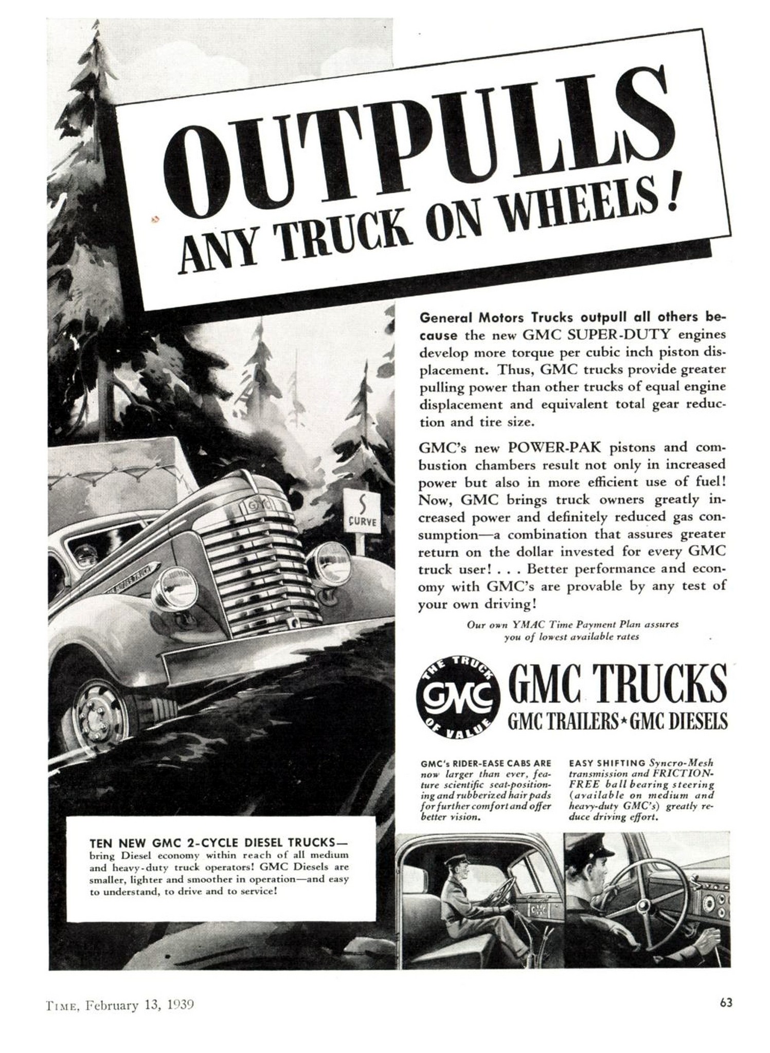 Main » Cars » GMC Ad and Poster Collection » 1939 GMC Trucks. Outpulls Any Truck On Wheels!