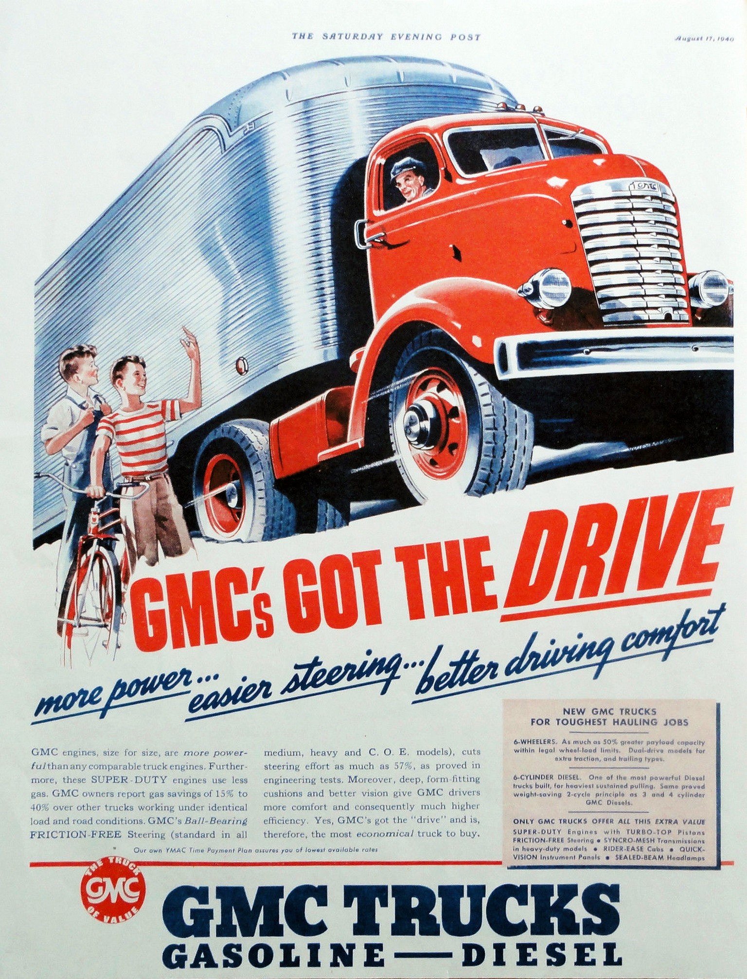 1940 GMC Truck. GMC’s Got The Drive, more power… easier steering… better driving comfort