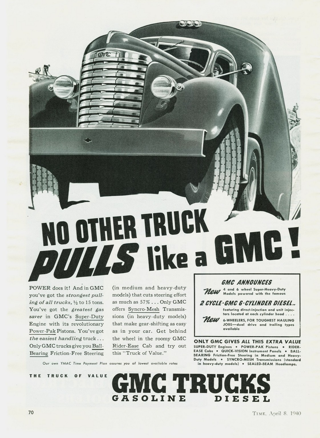 Main » Cars » GMC Ad and Poster Collection » 1940 GMC Trucks. No Other Truck Pulls like a GMC!