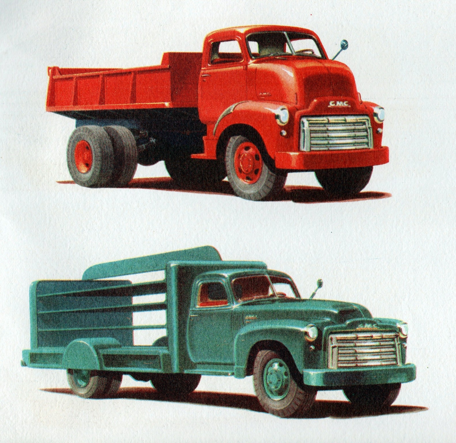Main » Cars » GMC Ad and Poster Collection » 1950 GMC C.O.E. Dump Truck & Conventional Beverage Truck