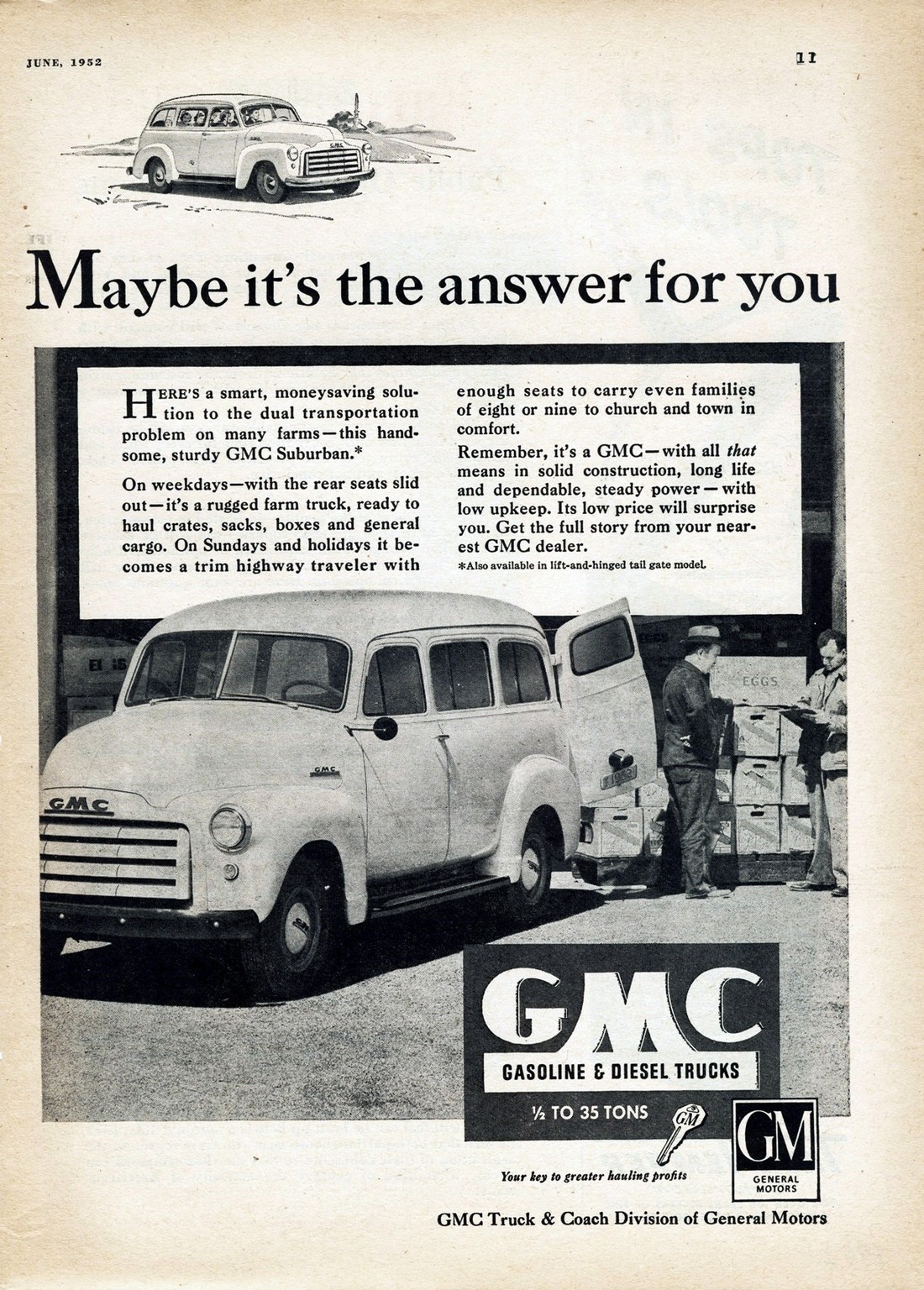 Main » Cars » GMC Ad and Poster Collection » 1952 GMC Suburban. Maybe it’s the answer for you