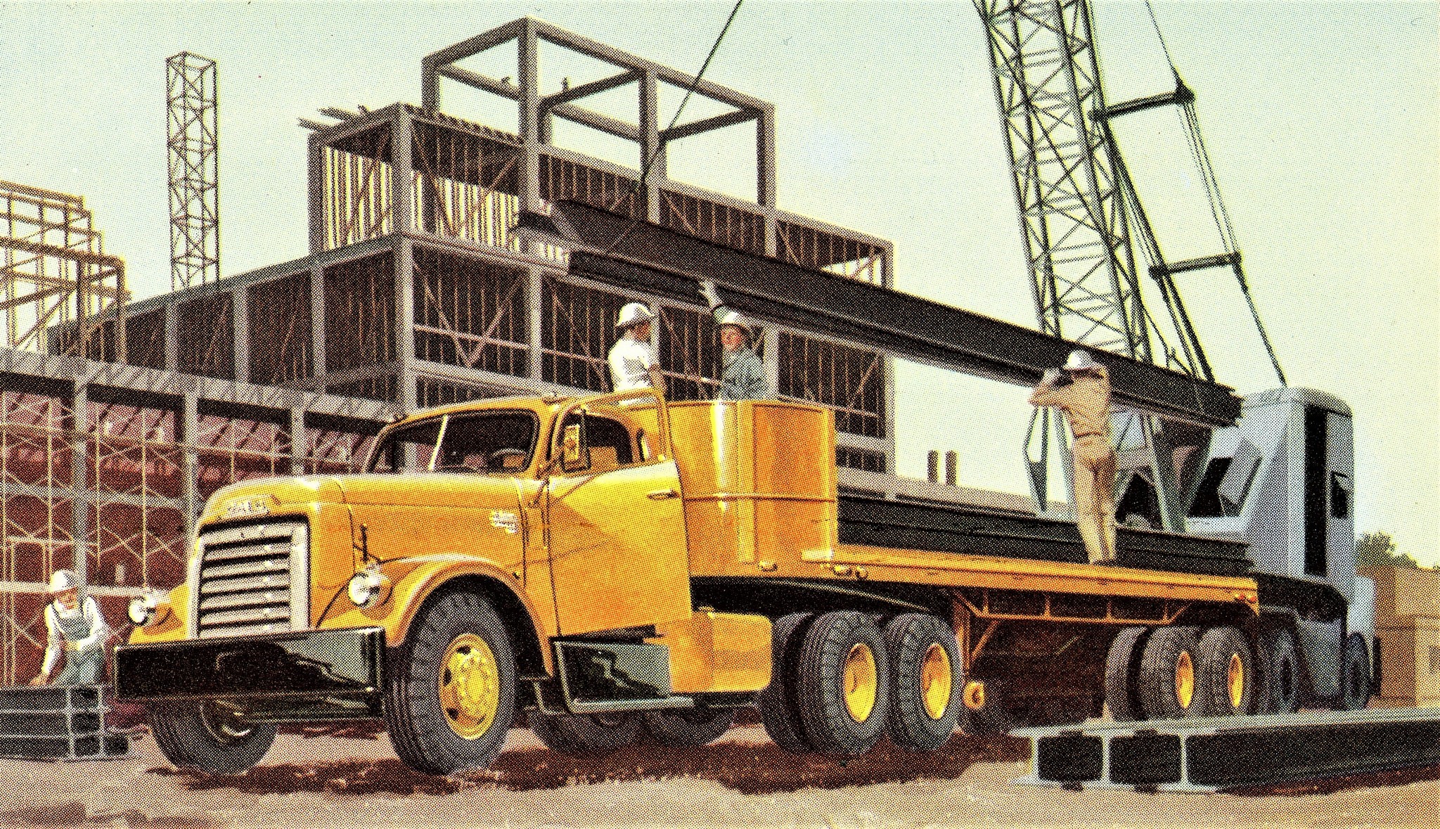 Main » Cars » GMC Ad and Poster Collection » 1954 GMC DW 970 Tractor & Flatbed Trailer