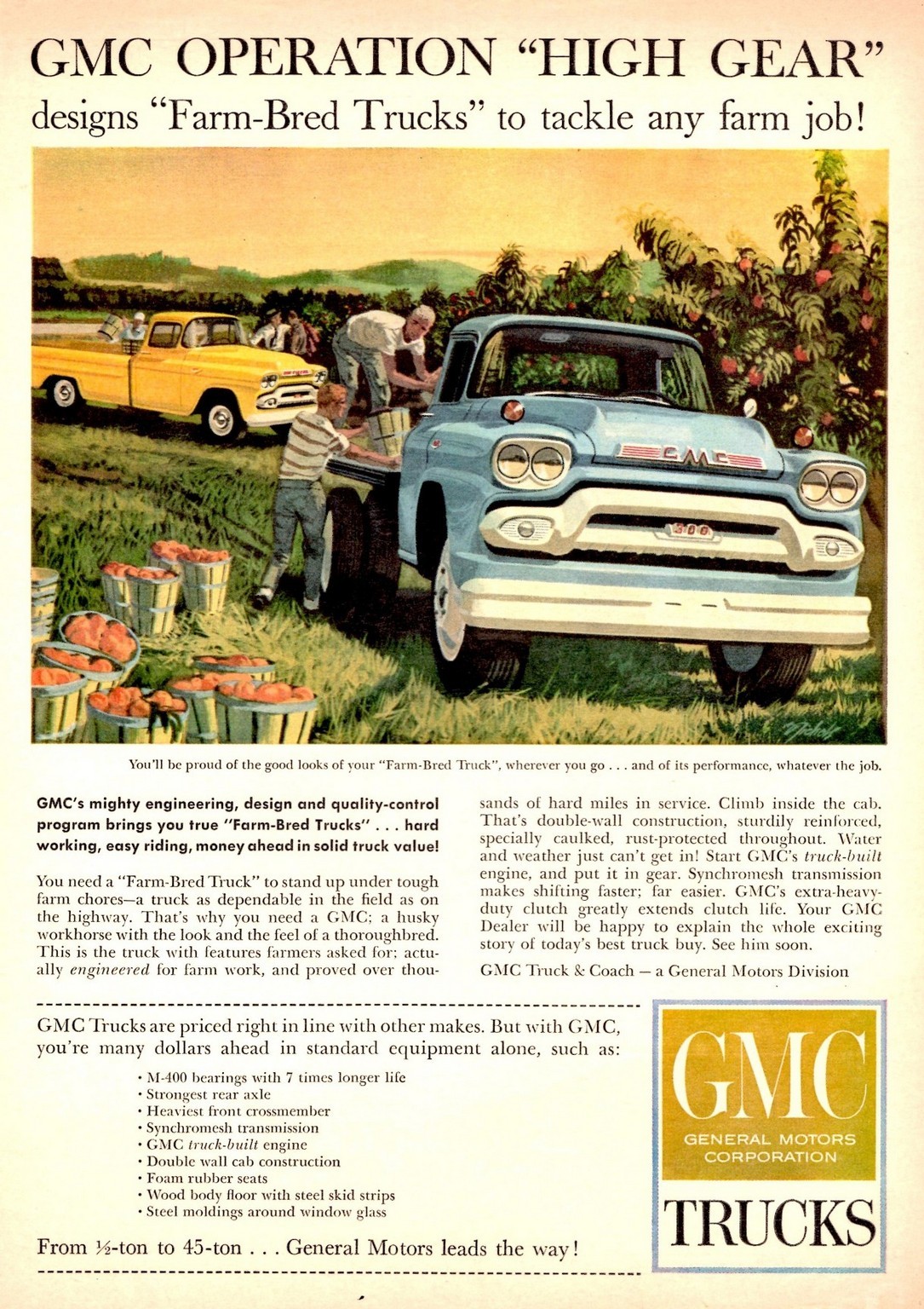 Main » Cars » GMC Ad and Poster Collection » 1959 GMC Pickup & Flatbed Truck. GMC Operation ‘High Gear’