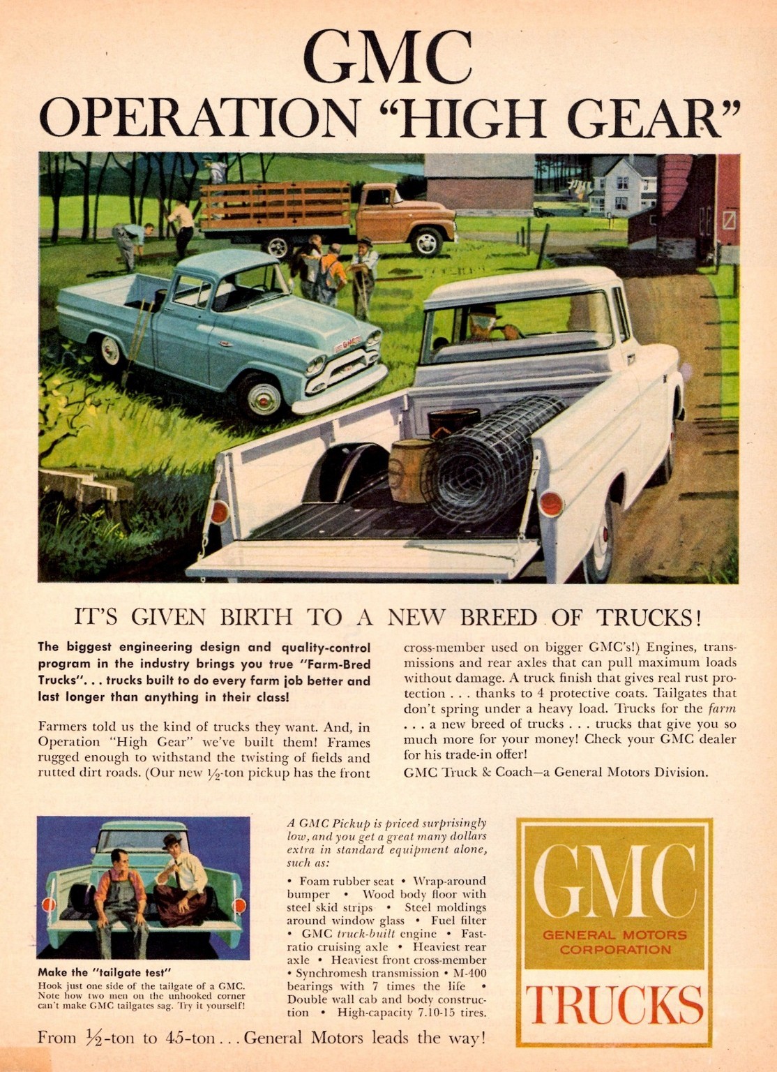 Main » Cars » GMC Ad and Poster Collection » 1959 GMC Pickups & Stake Truck. GMC Operation ‘High Gear’
