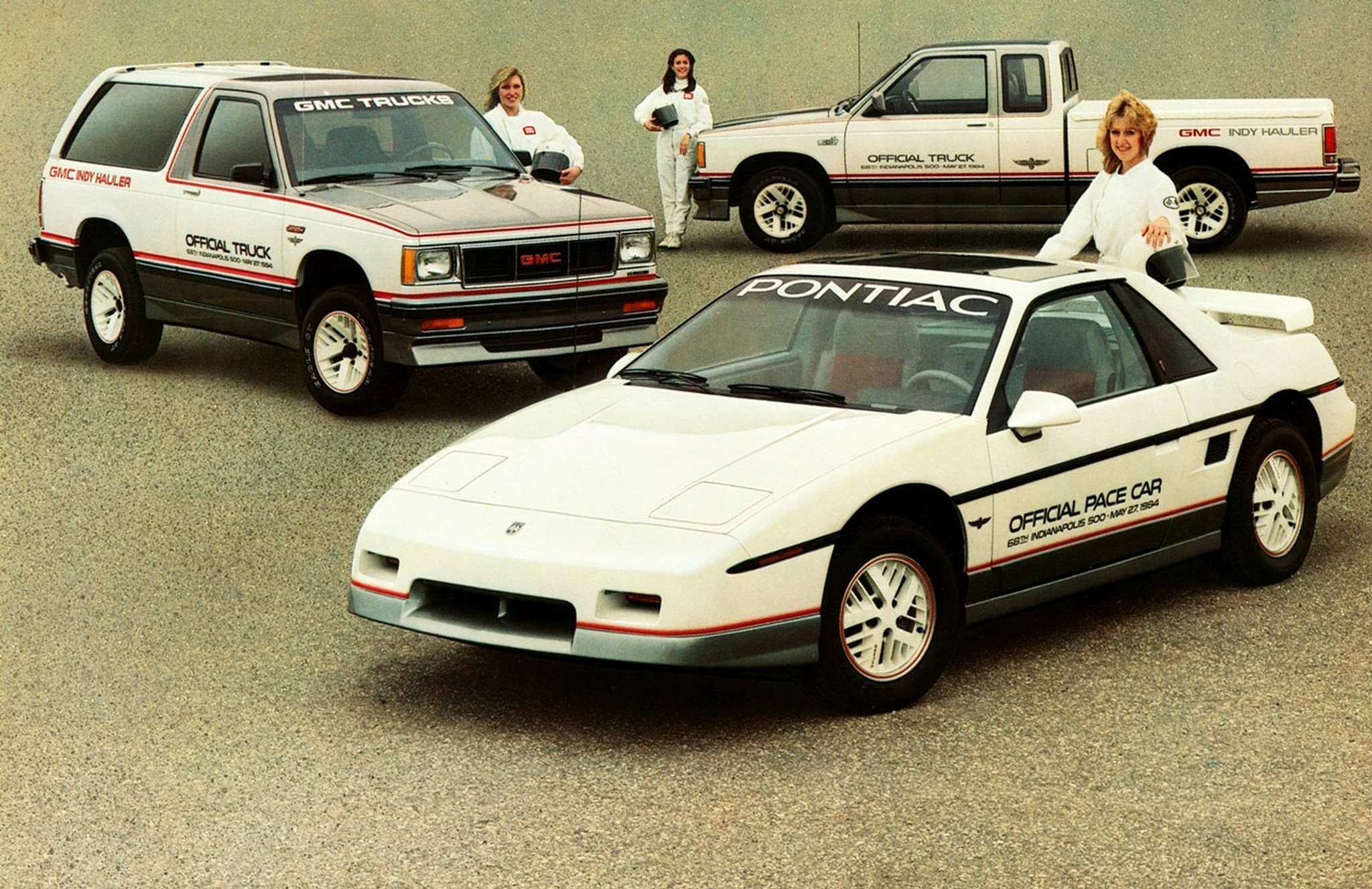 Main » Cars » GMC Ad and Poster Collection » 1984 Pontiac Fiero Indy Pace Car & GMC Official Trucks