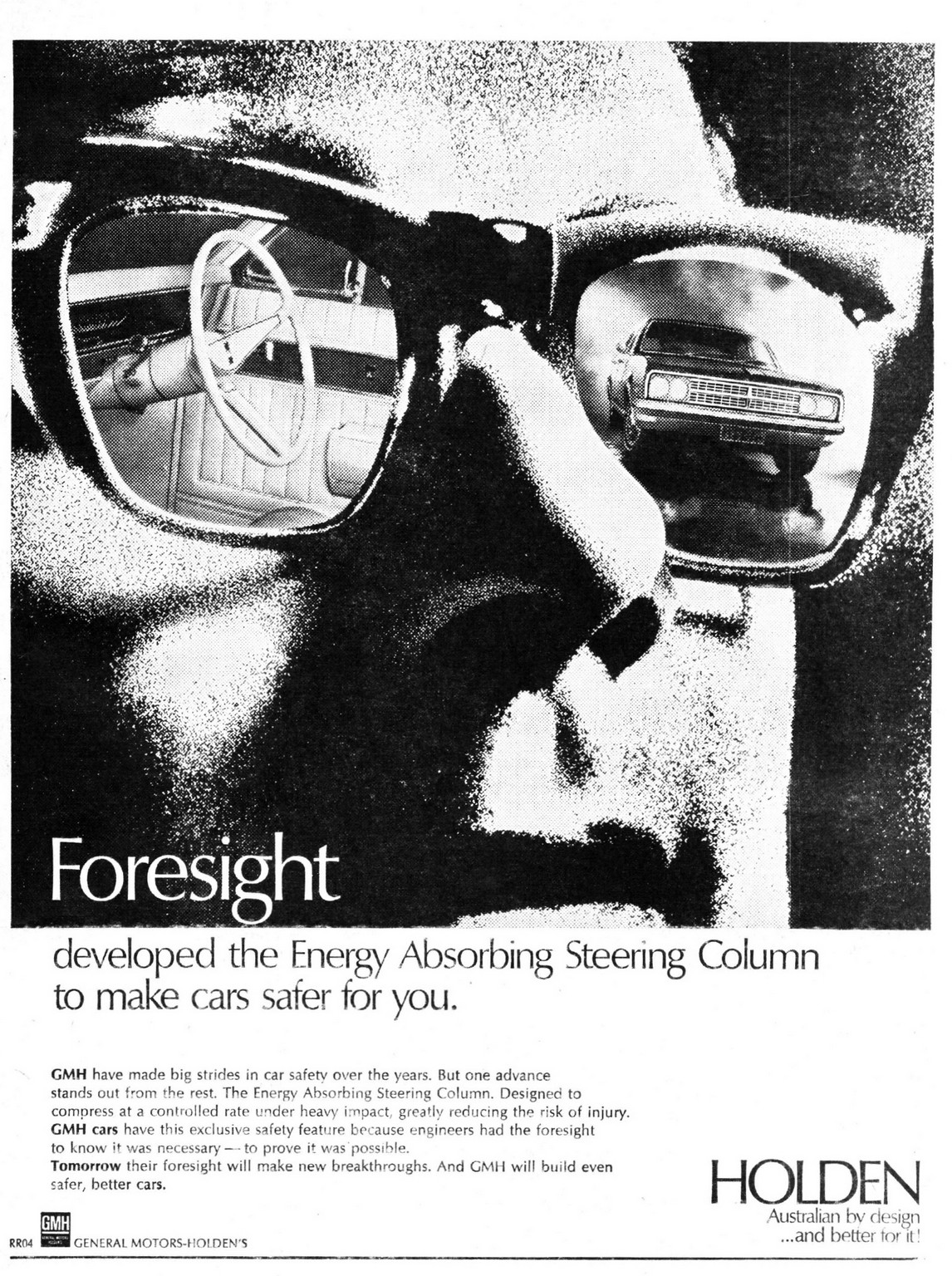 1969 Holden HK Premier. Foresight developed the Energy Absorbing Steering Column to make cars safer for you
