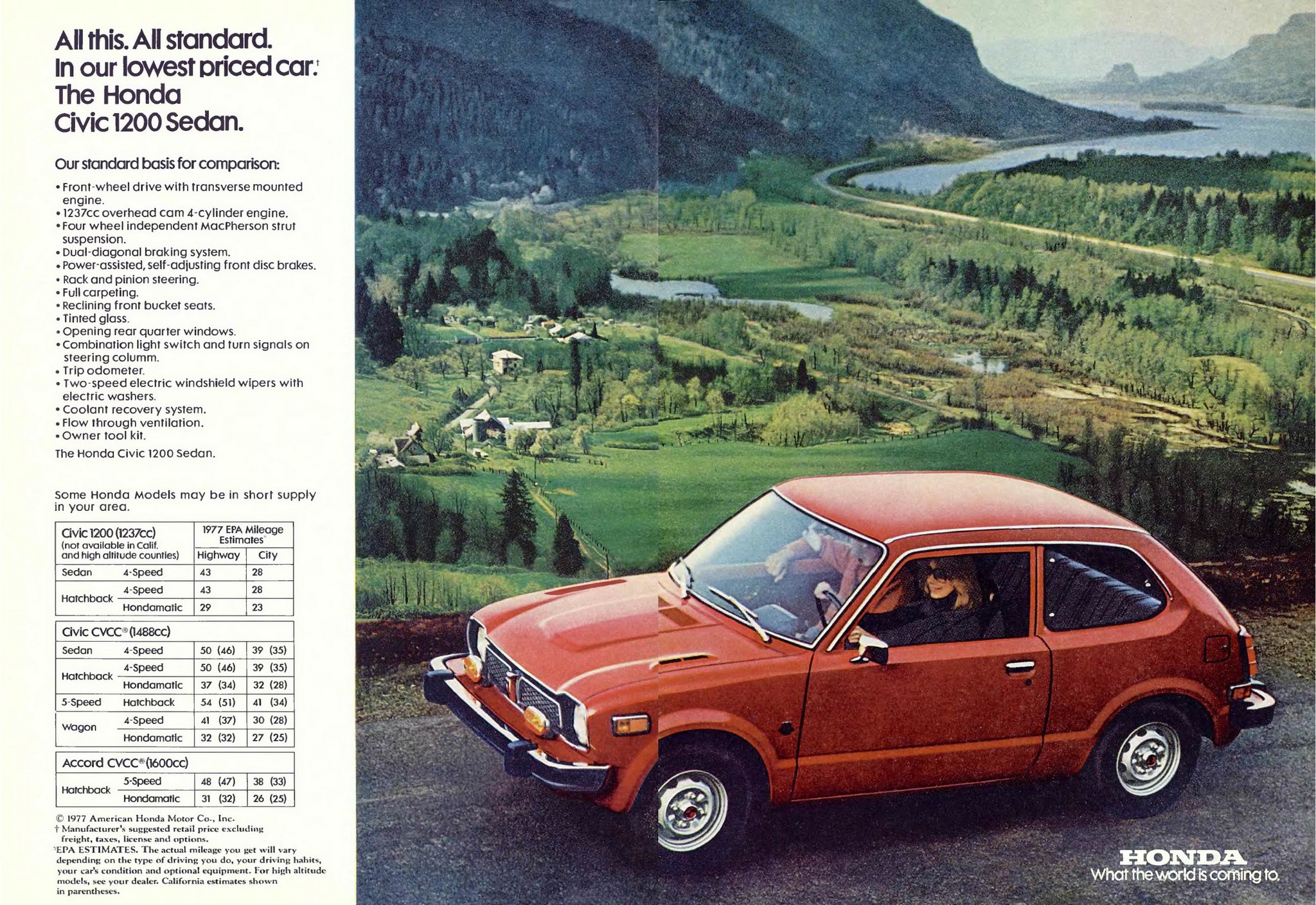 1977 Honda Civic 1200 Sedan. All This. All standard. In our lowest priced car