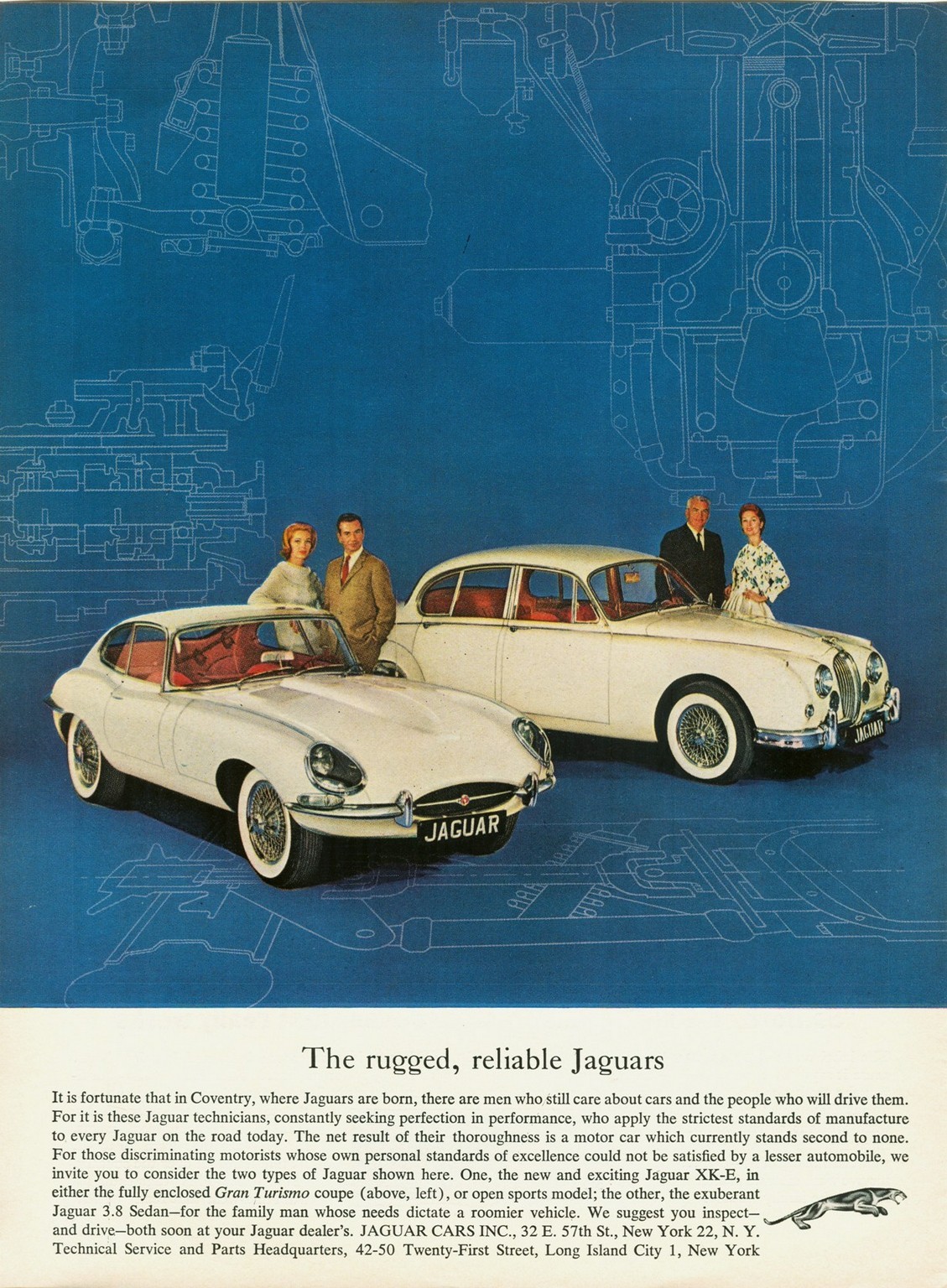 1962 Jaguar XK-E & 3.8 Sedan. The rugged, reliable Jaguars