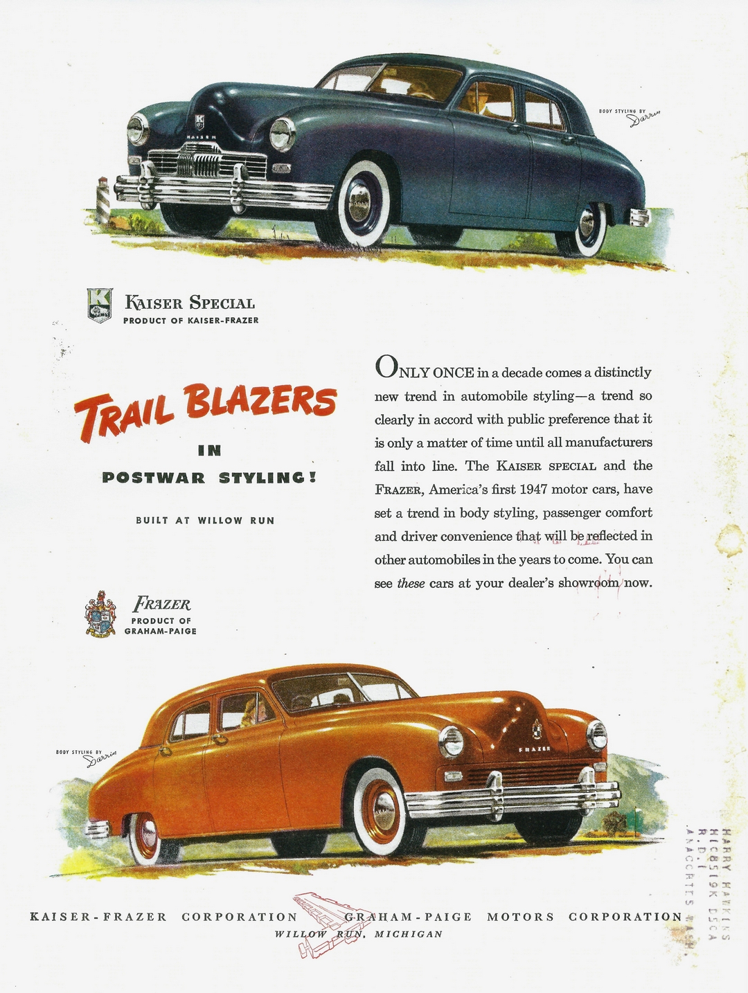 1947 Kaiser and Frazer. Trail Blazers In Postwar Styling!
