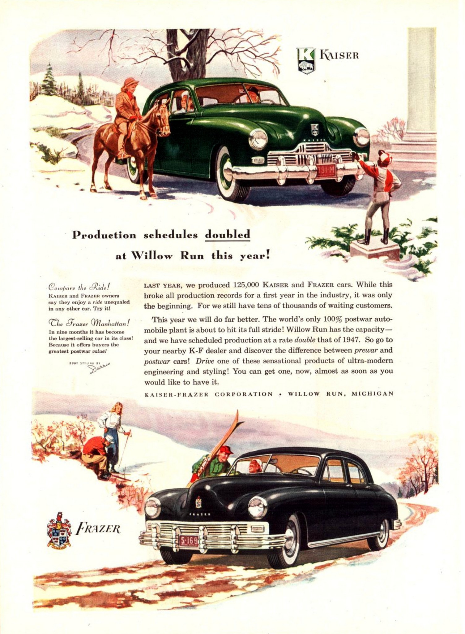 1948 Kaiser and Frazer. Production schedules doubled at Willow Run this year!