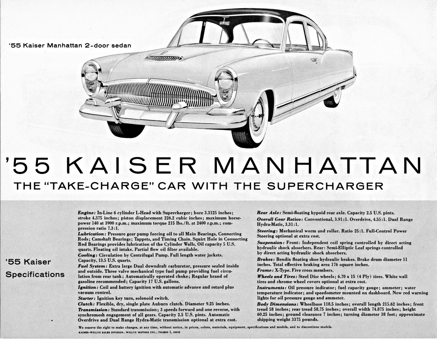1955 Kaiser Manhattan 2-Door Sedan & Specifications