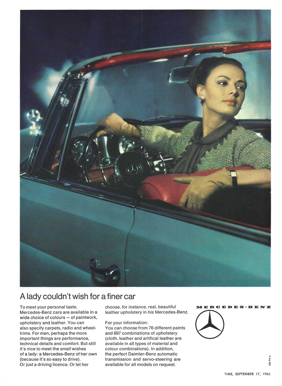 1965 Mercedes-Benz 220 SE Convertible. A lady couldn’t wish for a finer car