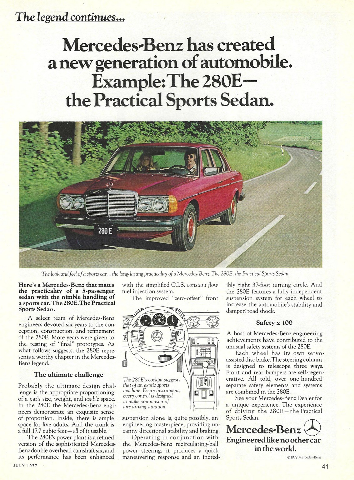 1977 Mercedes-Benz 280 E. Mercedes-Benz has created a new generation of automobile